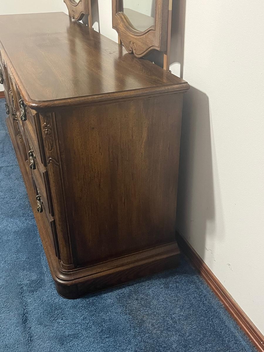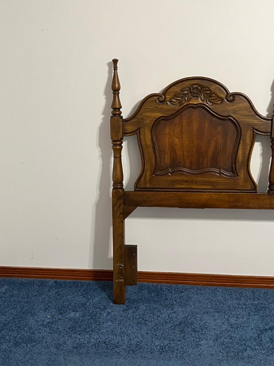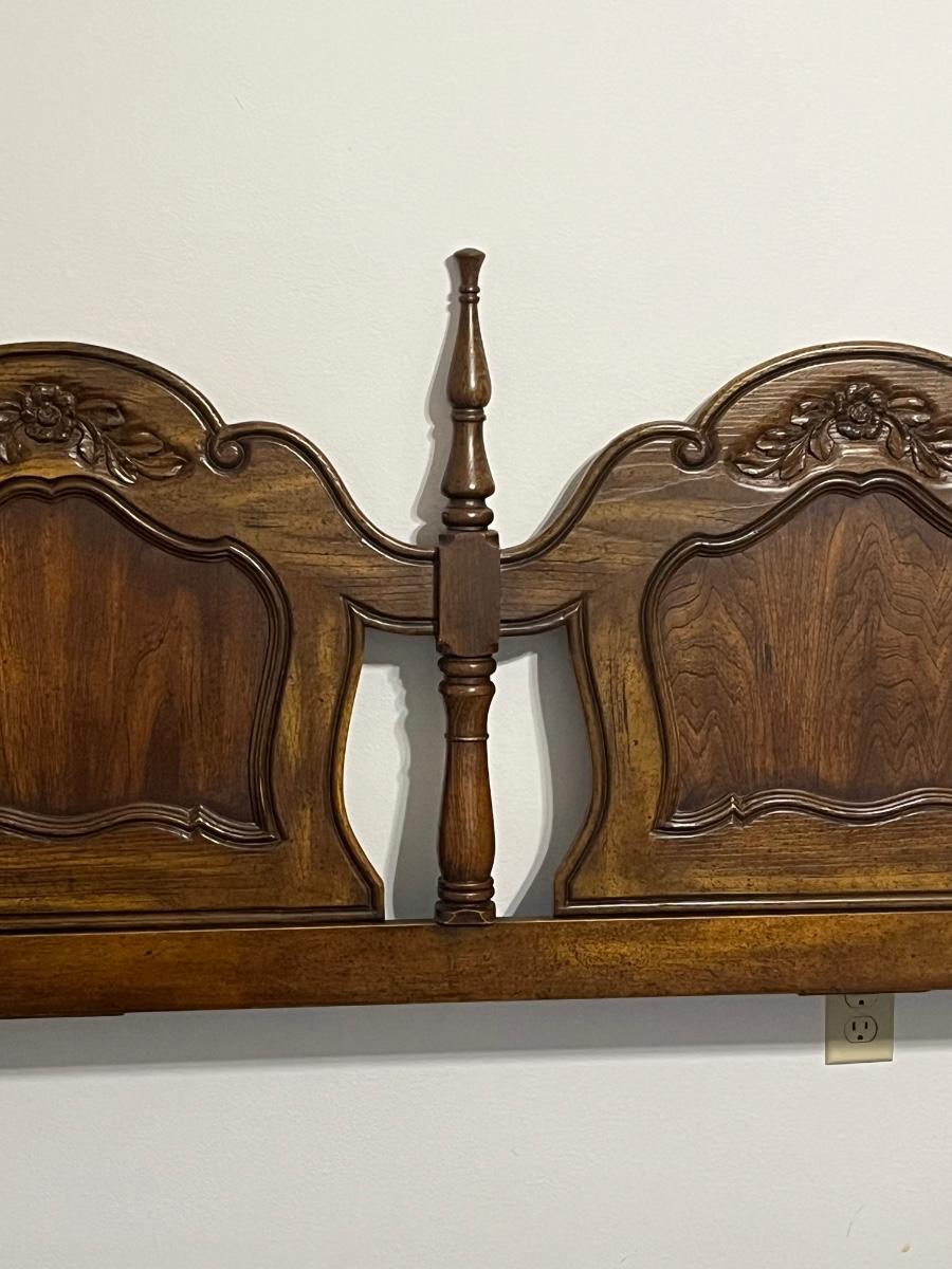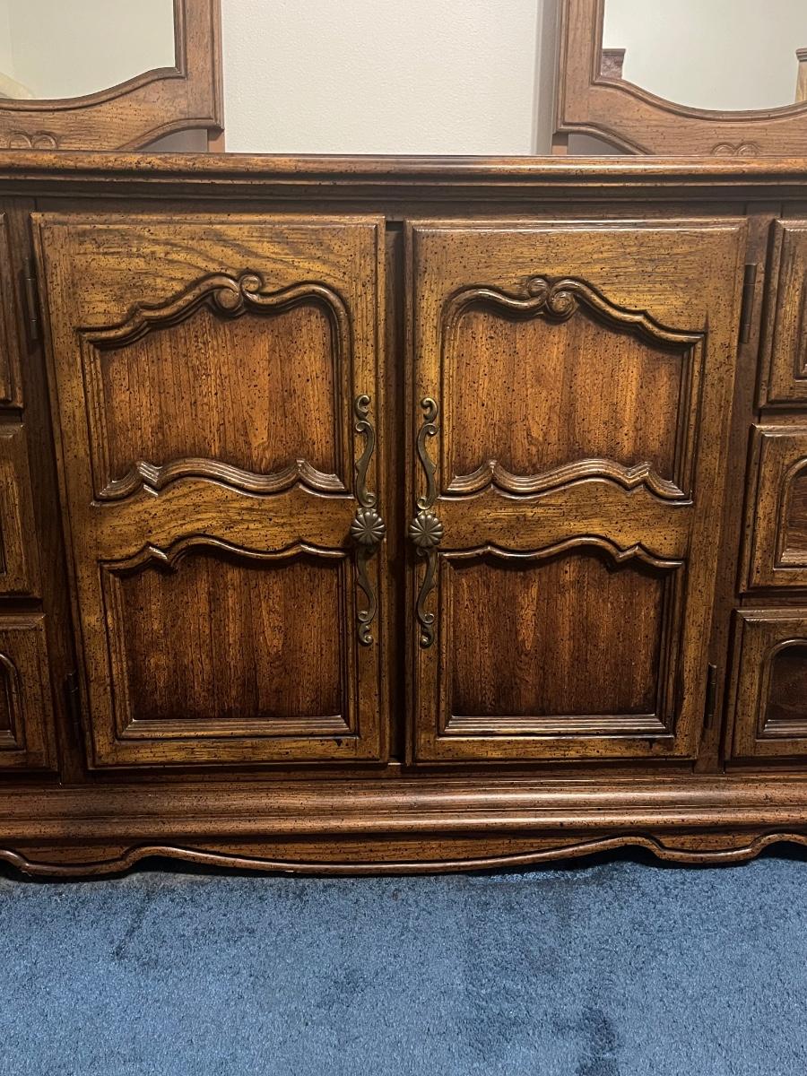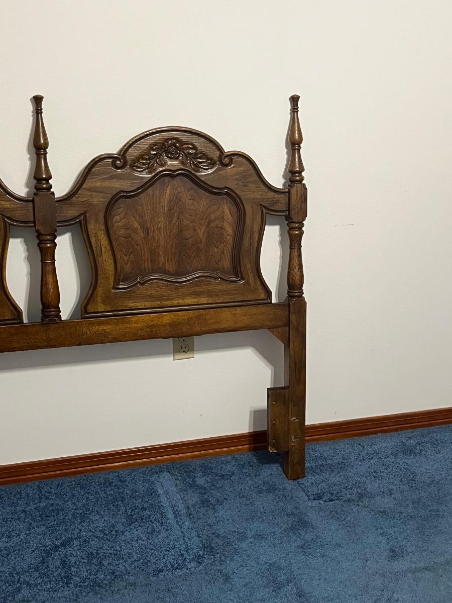 Dresser = 31” H x 72” W x 20” D ~ removable mirrors = 47” H x 23” W x 1.5” D ~ armoire = 60” H x 38” W x 20.5” D ~ bedside table = 23.5” H x 25” W x 16” D ~ headboard = 47” H x 59” W ~ drawers slide easily ~ no bed railings included.