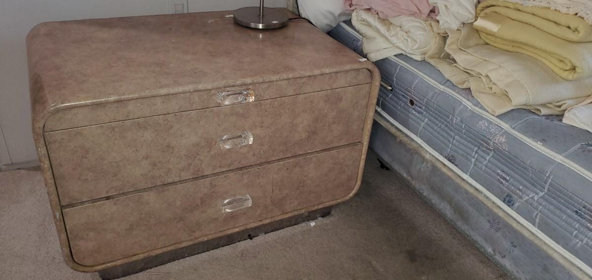 Bedroom Furniture: 2 twin beds (or push together for one king) & 2 side tables & linens