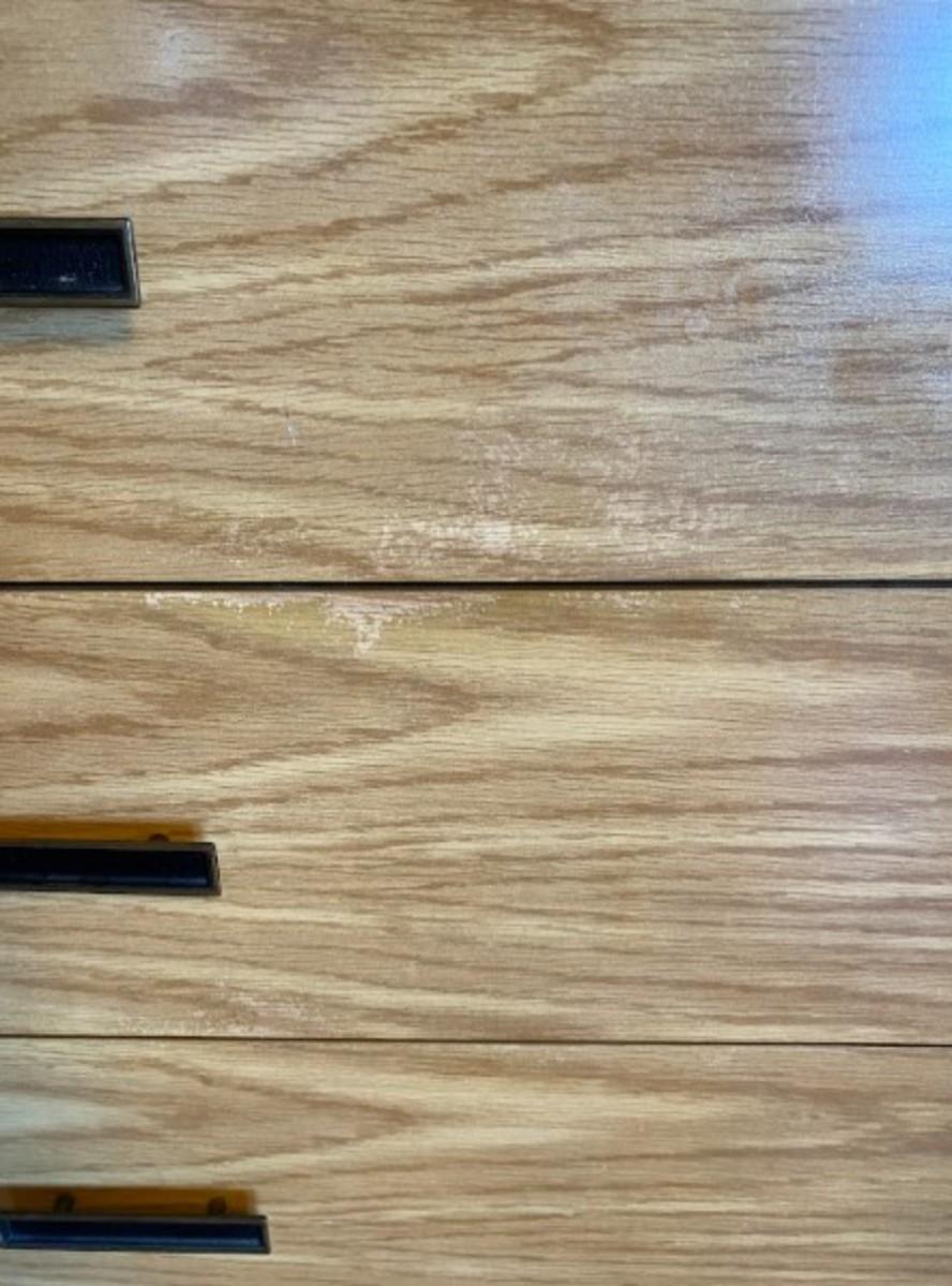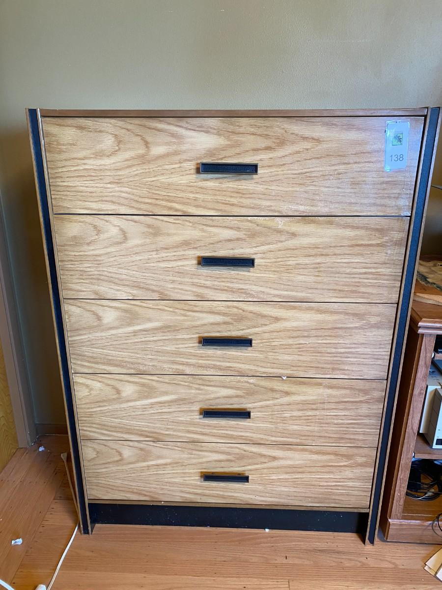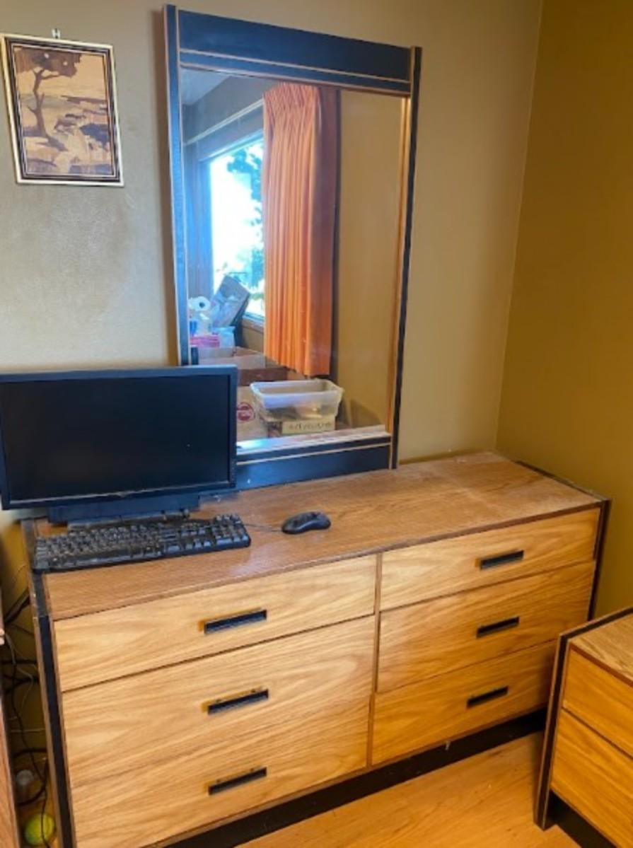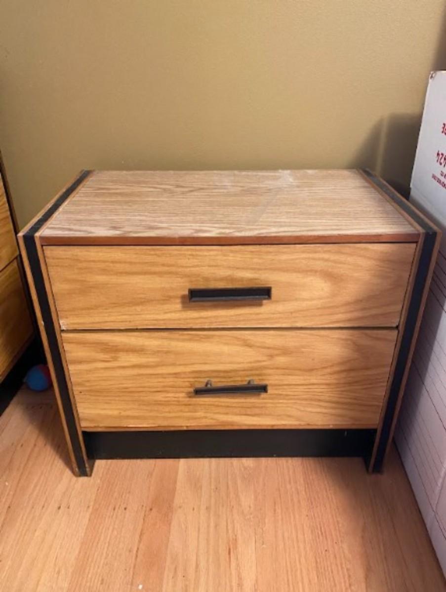 One tall dresser, one long dresser attached mirror and small night stand. All made of particle board and has some wear. 55" x 29" x 15"