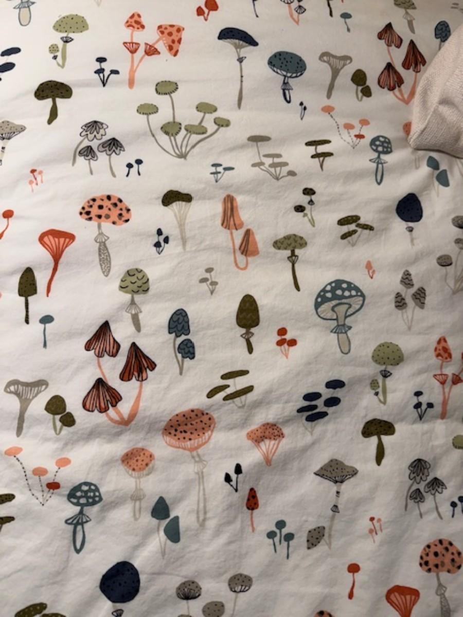 Down comforter in duvet - Q with Mushroom decor on duvet (really cute)
