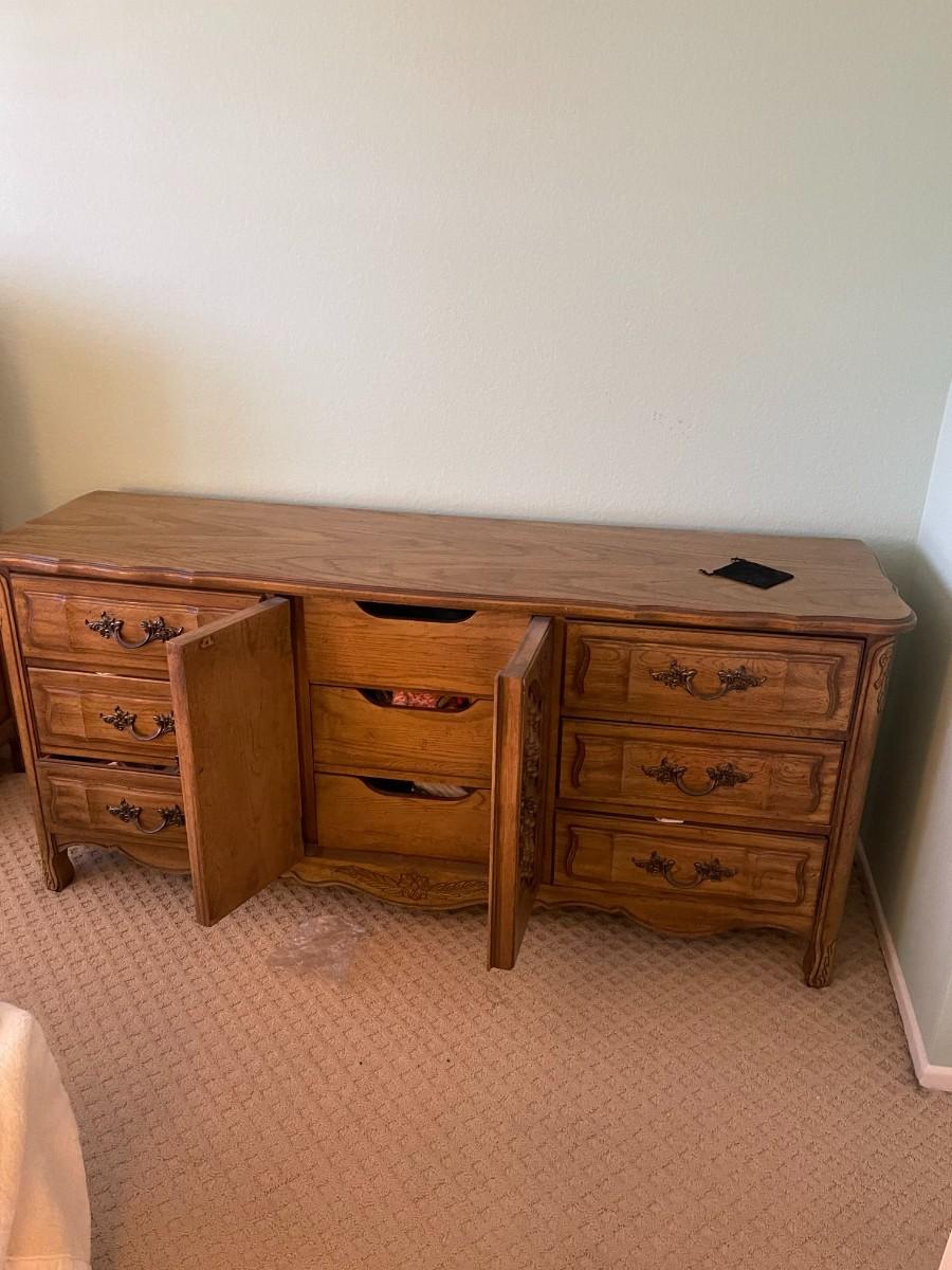 Full-size Bed, Two Nightstands, Shelving Unit and Dresser