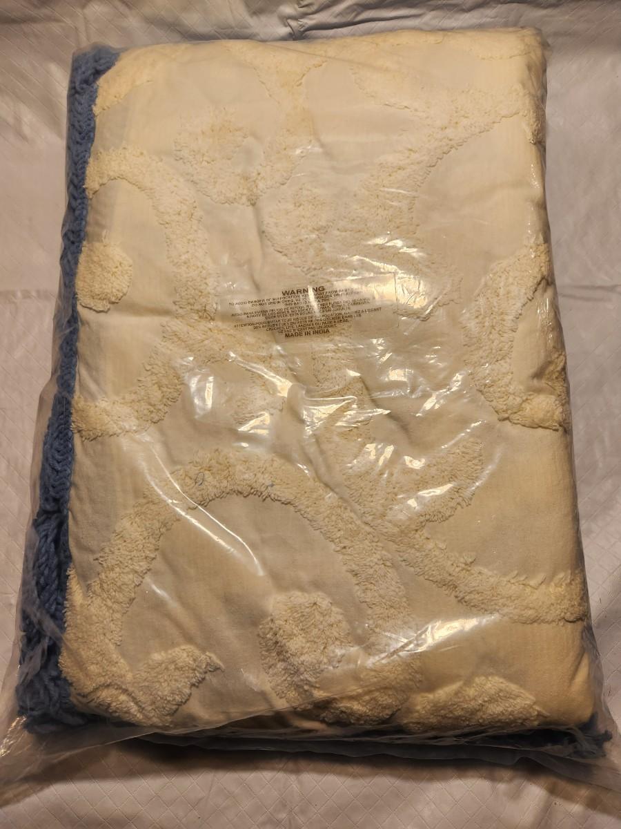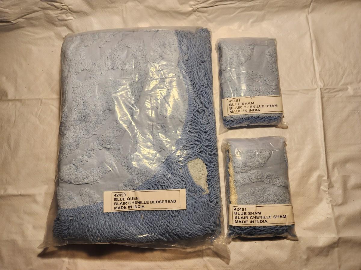 Blue bedspread and 2 matching pillow shams. Unopened and unused.