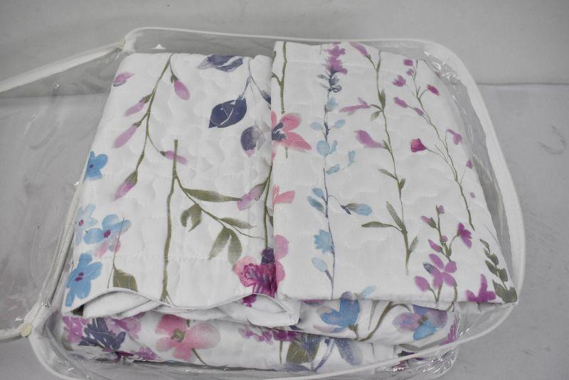 Bedsure 3 Pc Ultra-Soft White Lilac Floral Quilt & Sham Bedding Set Full/Queen