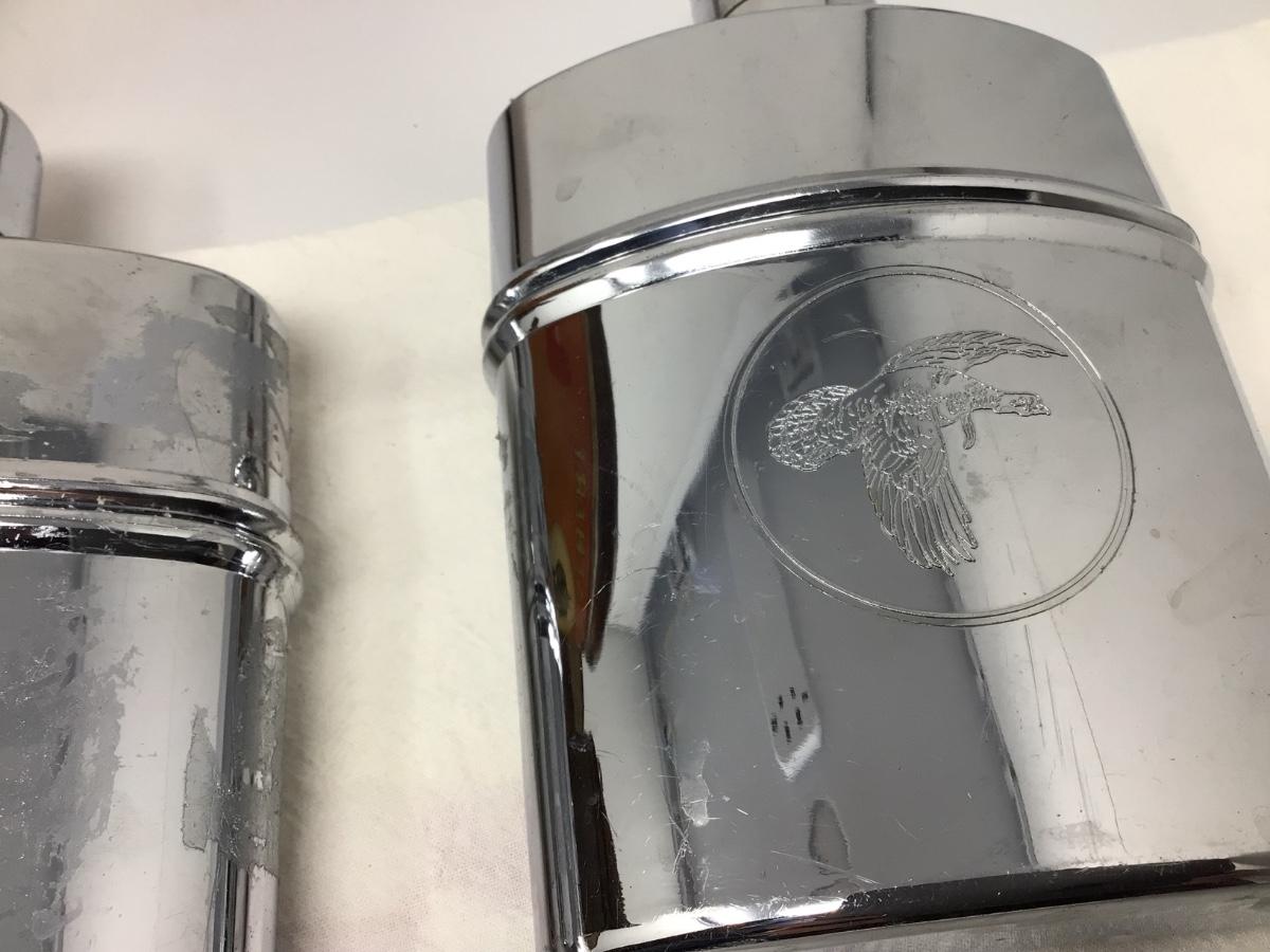 You get this great bee stoker with wood back, tobacco tin, and two metal cover glass flasks. They both have pheasants imbossed on it.