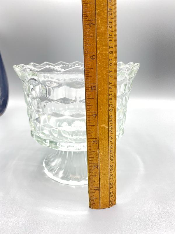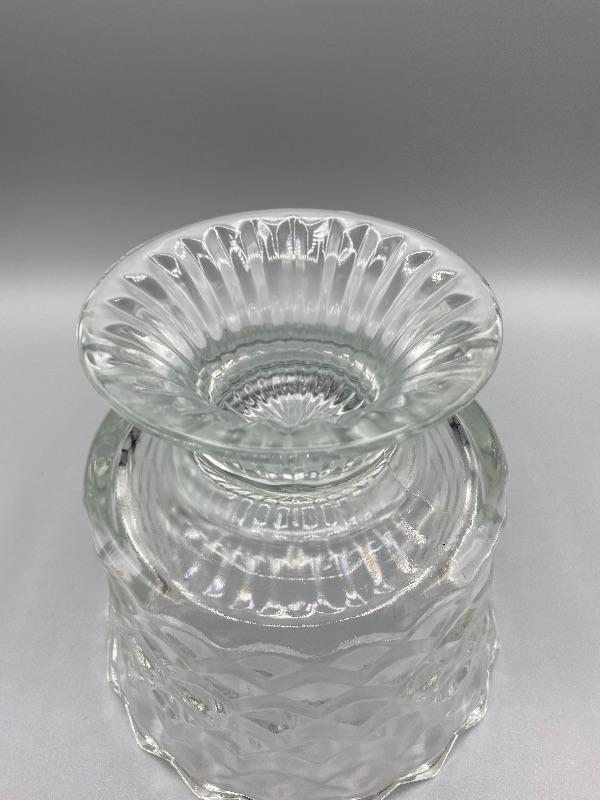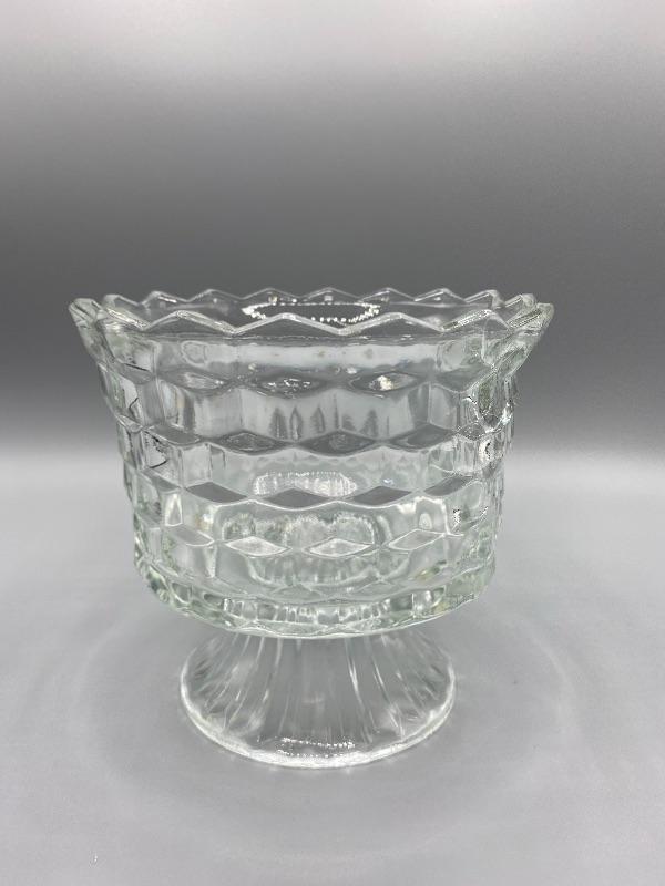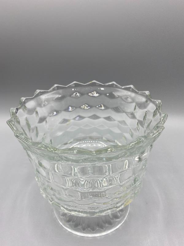 Vintage glass trifle bowl. Has a beehive honeycomb texture pattern. Sawtooth edge. Good condition, no chips