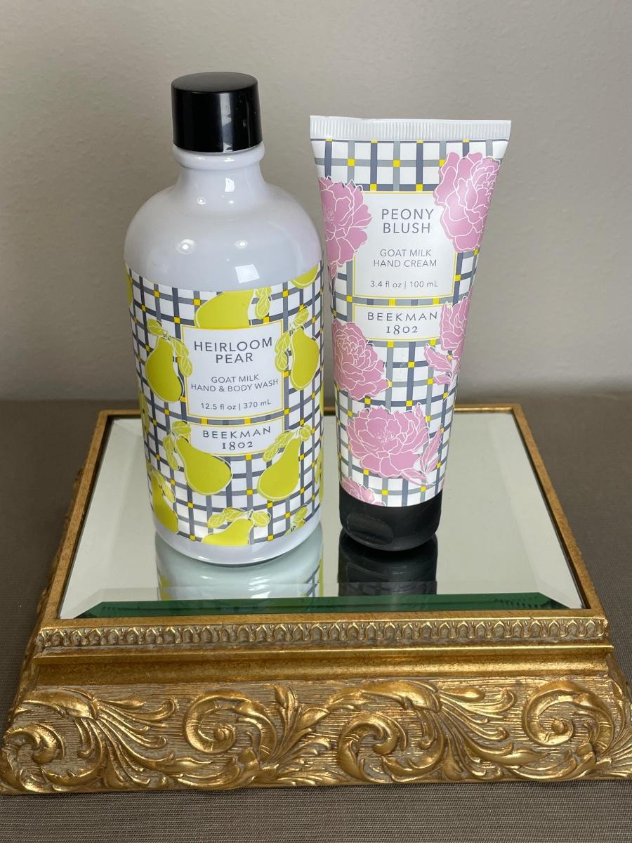 New and sealed. Heirloom Pear hand and body wash and Peony Blush hand cream.