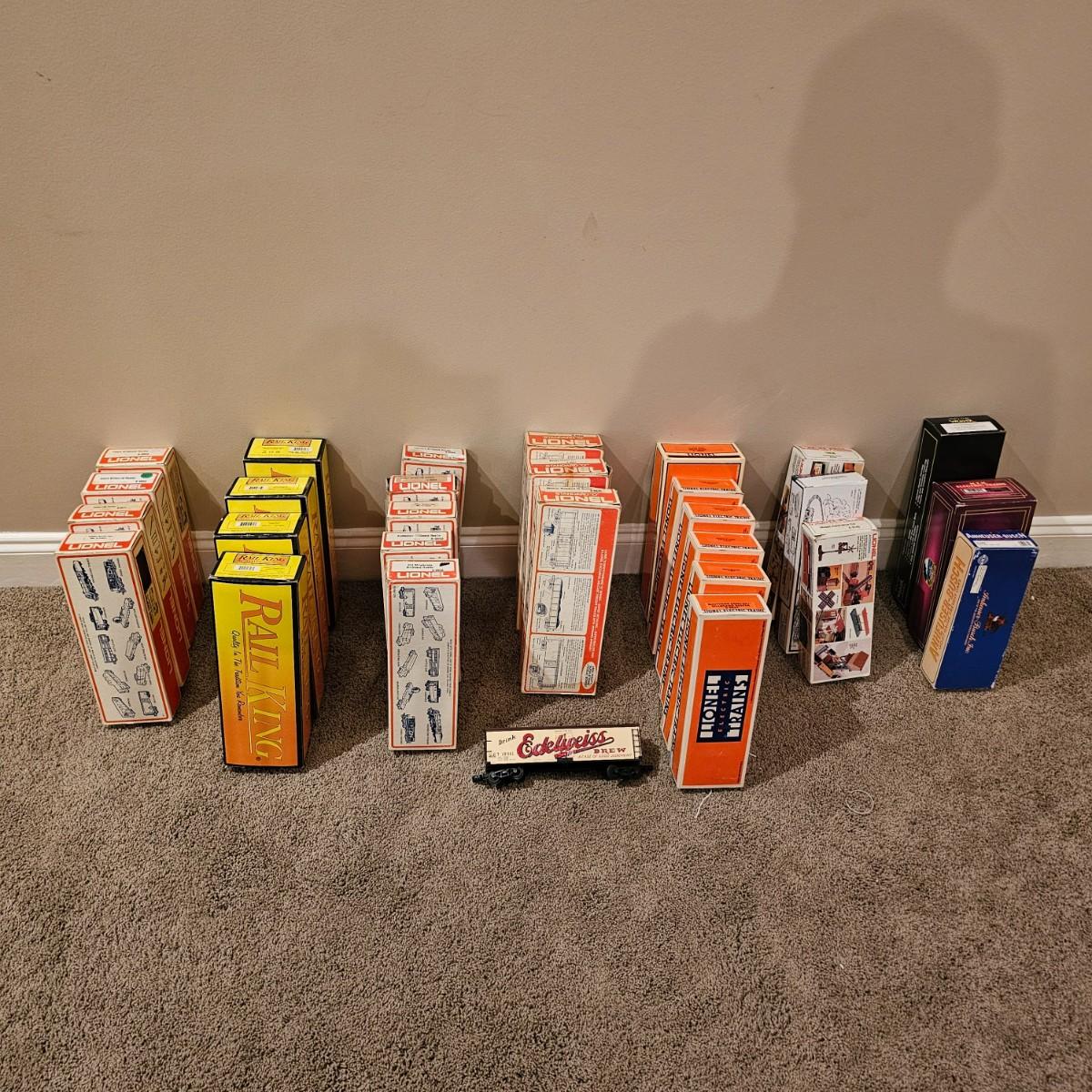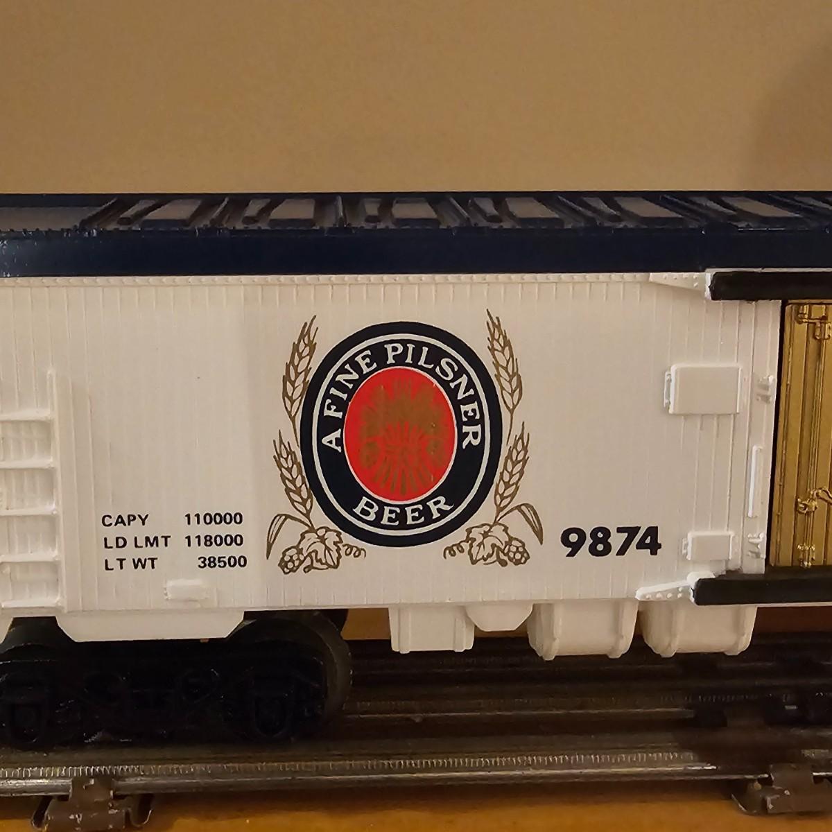 Pabst, Miller, Schlitz and more, all the great brewery names in this batch. Railroad stock was used greatly to promote many products in years past. These are some of the most iconic. All cars are O gauge, and all have boxes but one. 29 cars total. All are used, and may be missing small pieces like brake wheels, steps, etc. Boxes too are in varying condition. See photos for details. Local pickup only. Please note that any price tag seen on an item was not put there by Sterling Transitions and does not reflect the current value of the item. Shipping available.
