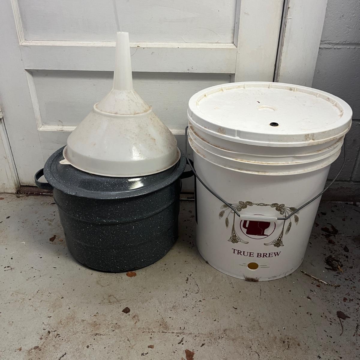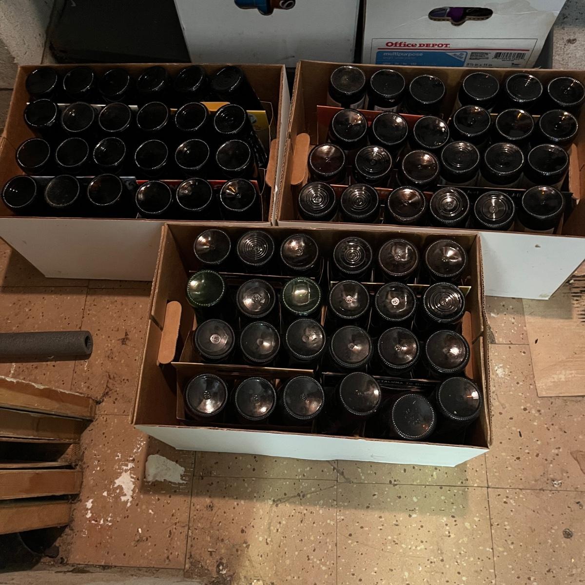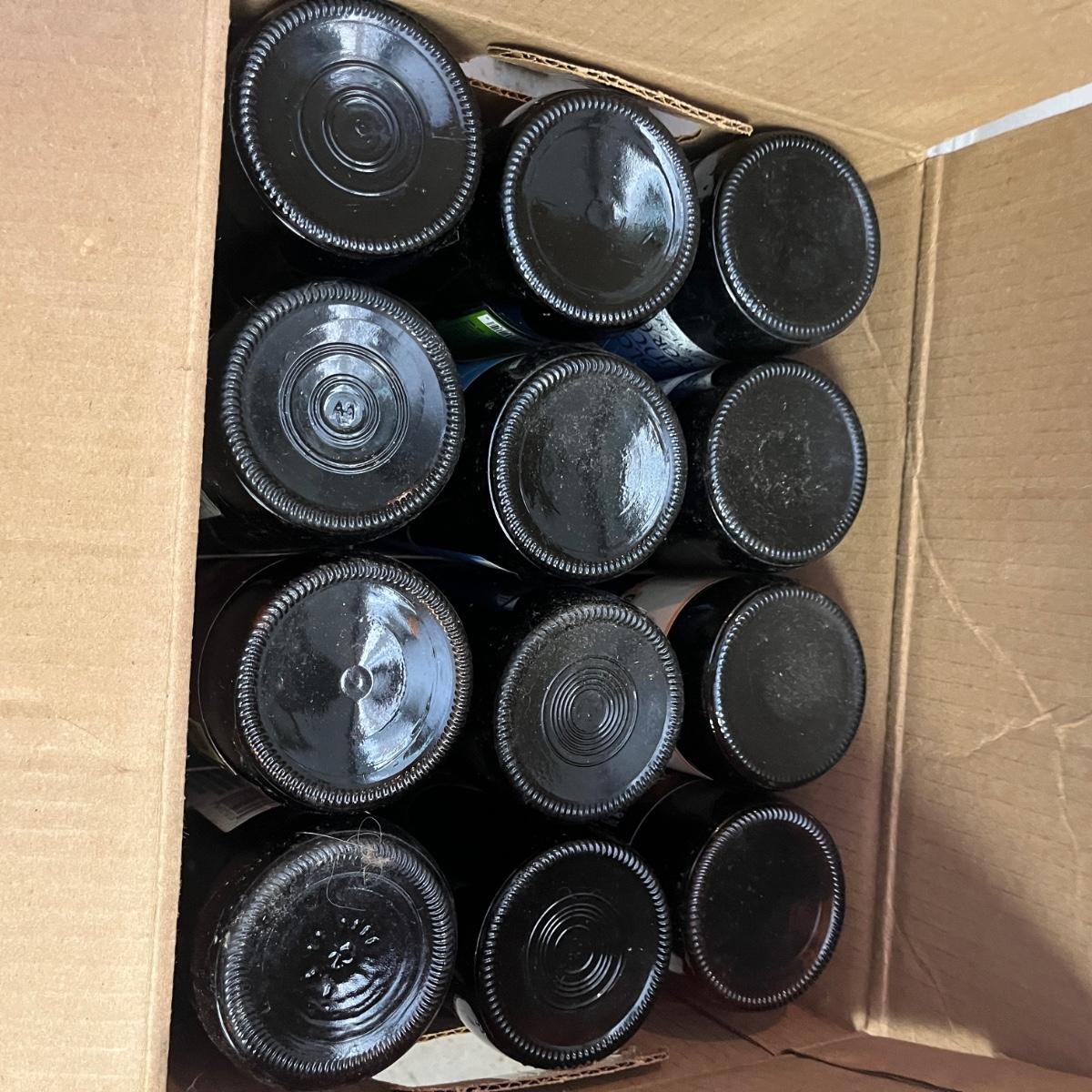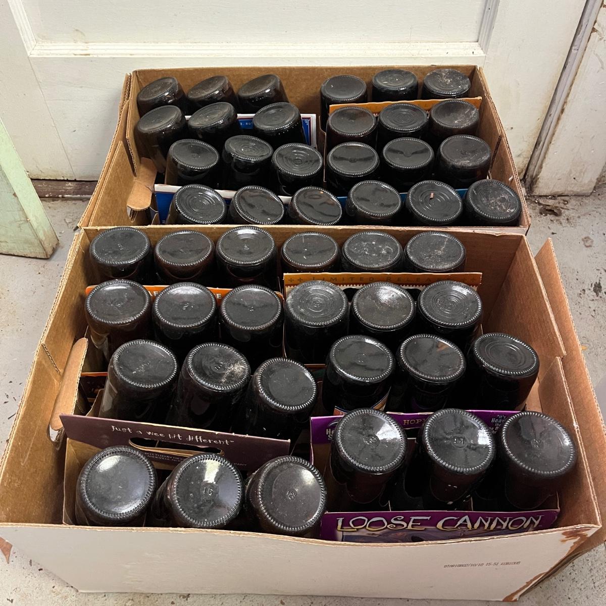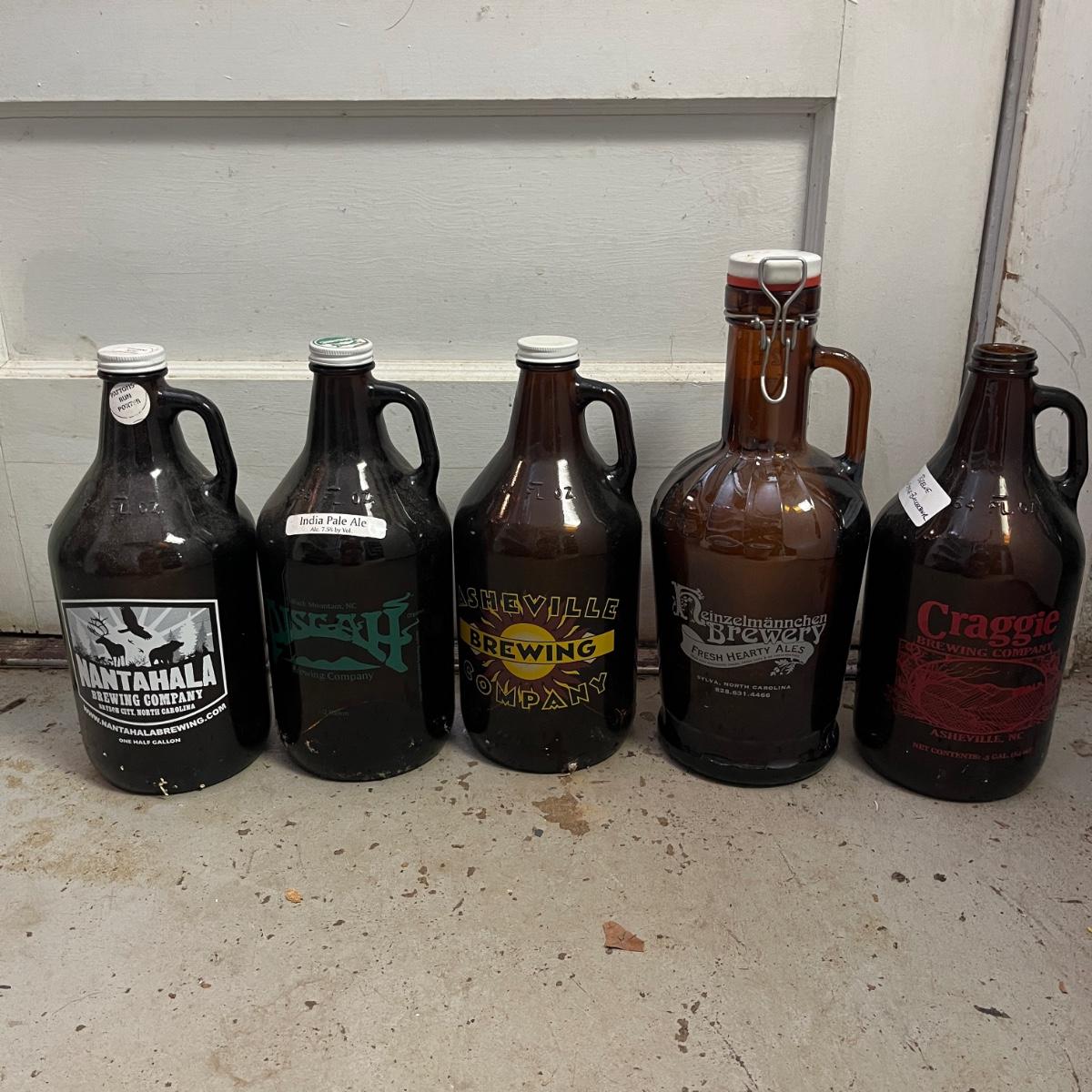 Lot contains a plethora of beer bottles and brewing gear that includes over 150 beer bottles, Corny keg, growlers, bottle caps and capper, brewing bucket and more. Largest growler measures 6”D x13”H.