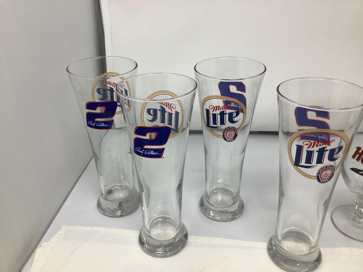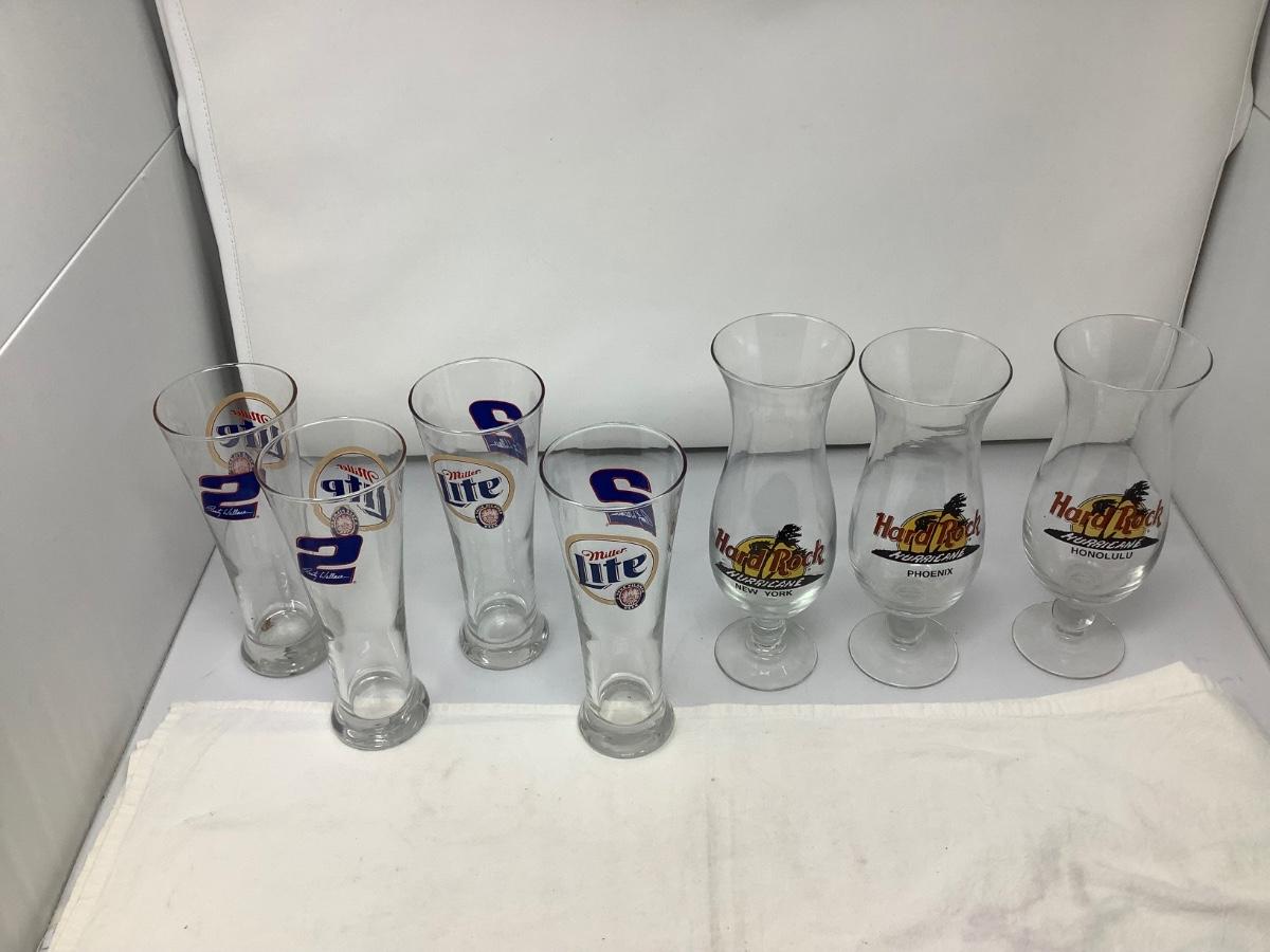 You get Set of 4 Miller Lite Rusty Wallace glasses, Hardrock Glasses New York, Phoenix, Honolulu.