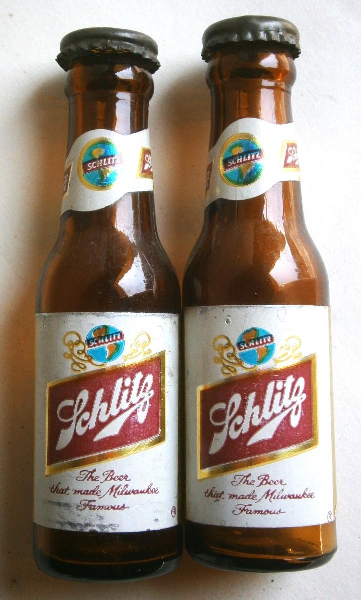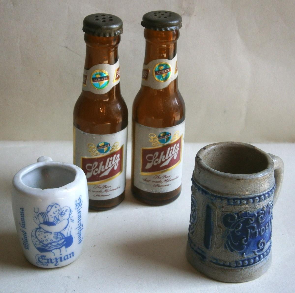 BEER LOT consisting of Schlitz S&P shakers, 4 in. tall, 2 miniature steins, 1 1/2 in. & 2 in. tall.