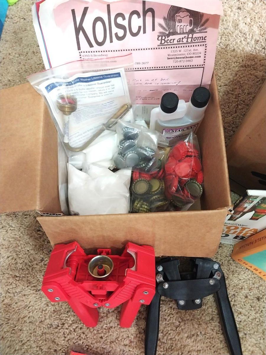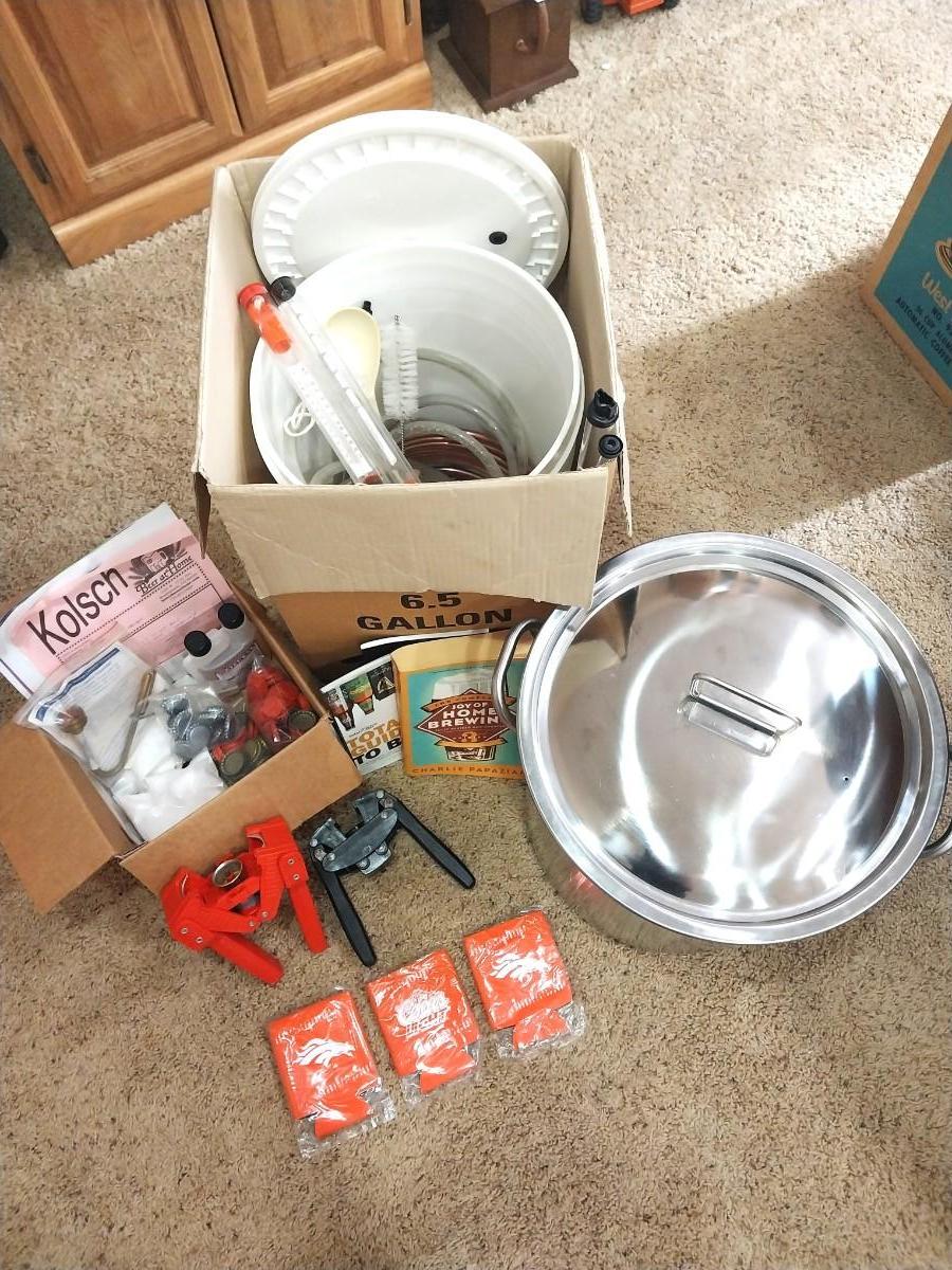 STAINLESS STEEL POT WITH LID-RECIPE AND INSTRUCTION BOOKS-BOTTLE CAPS AND CAPPERS-COORS LIGHT/BRONCO BOTTLE HOLDERS-MORE