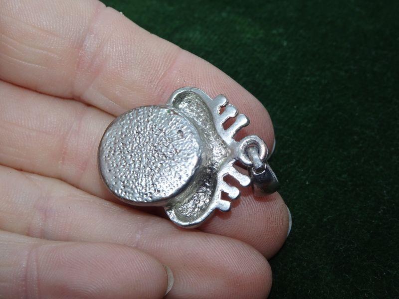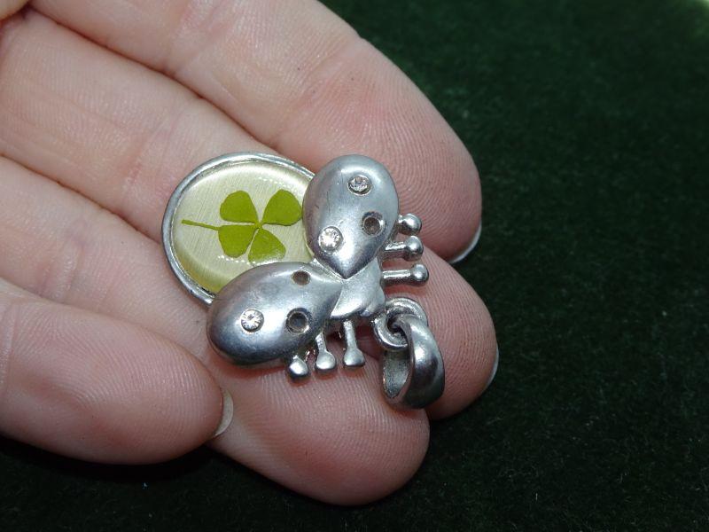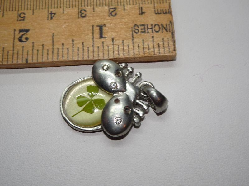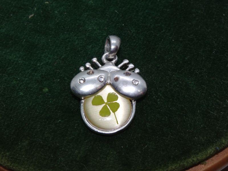 Beetle & Lucky 4 Leaf Clover Pendant, Silver Tone