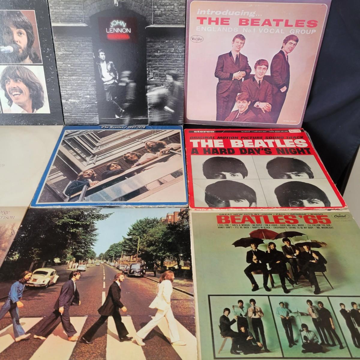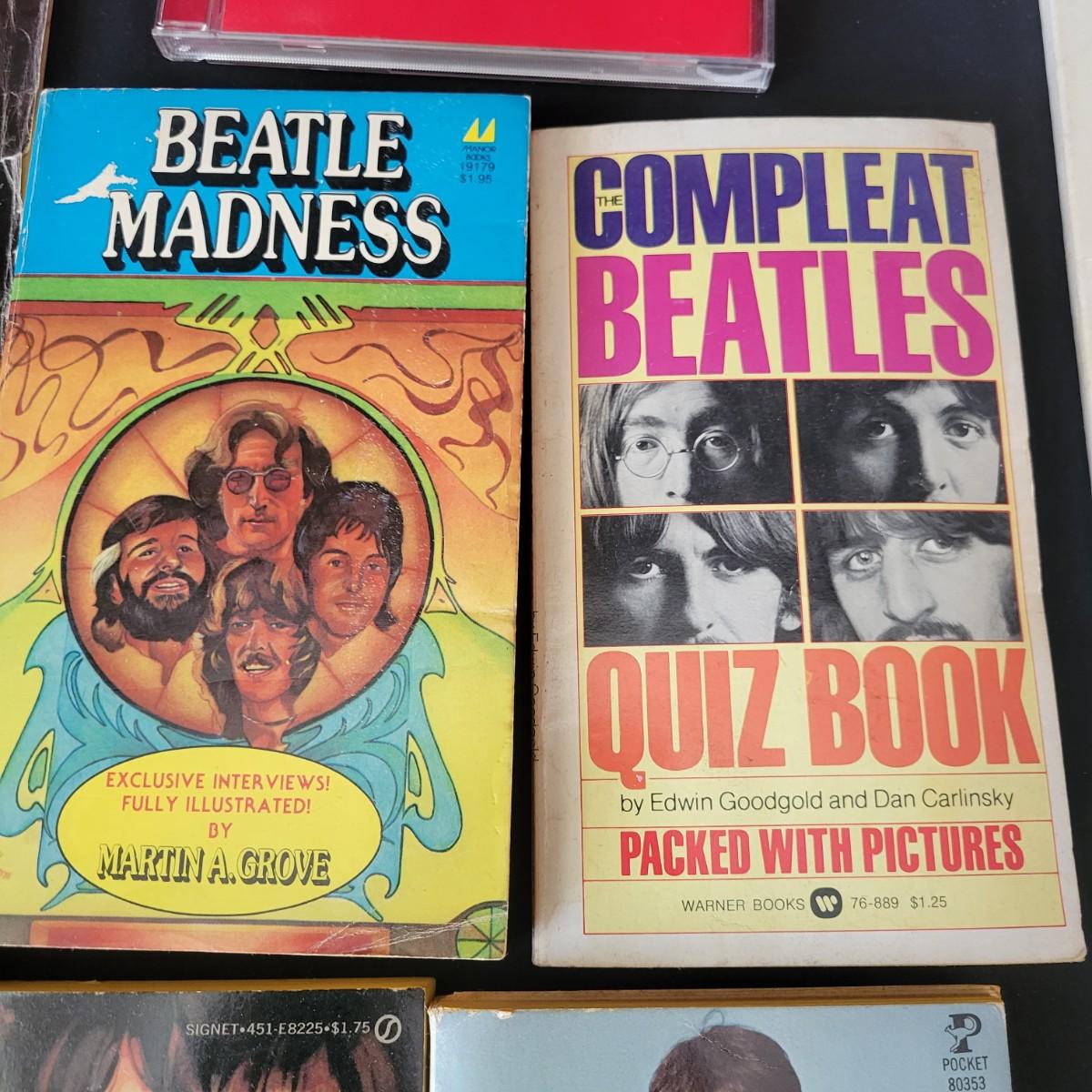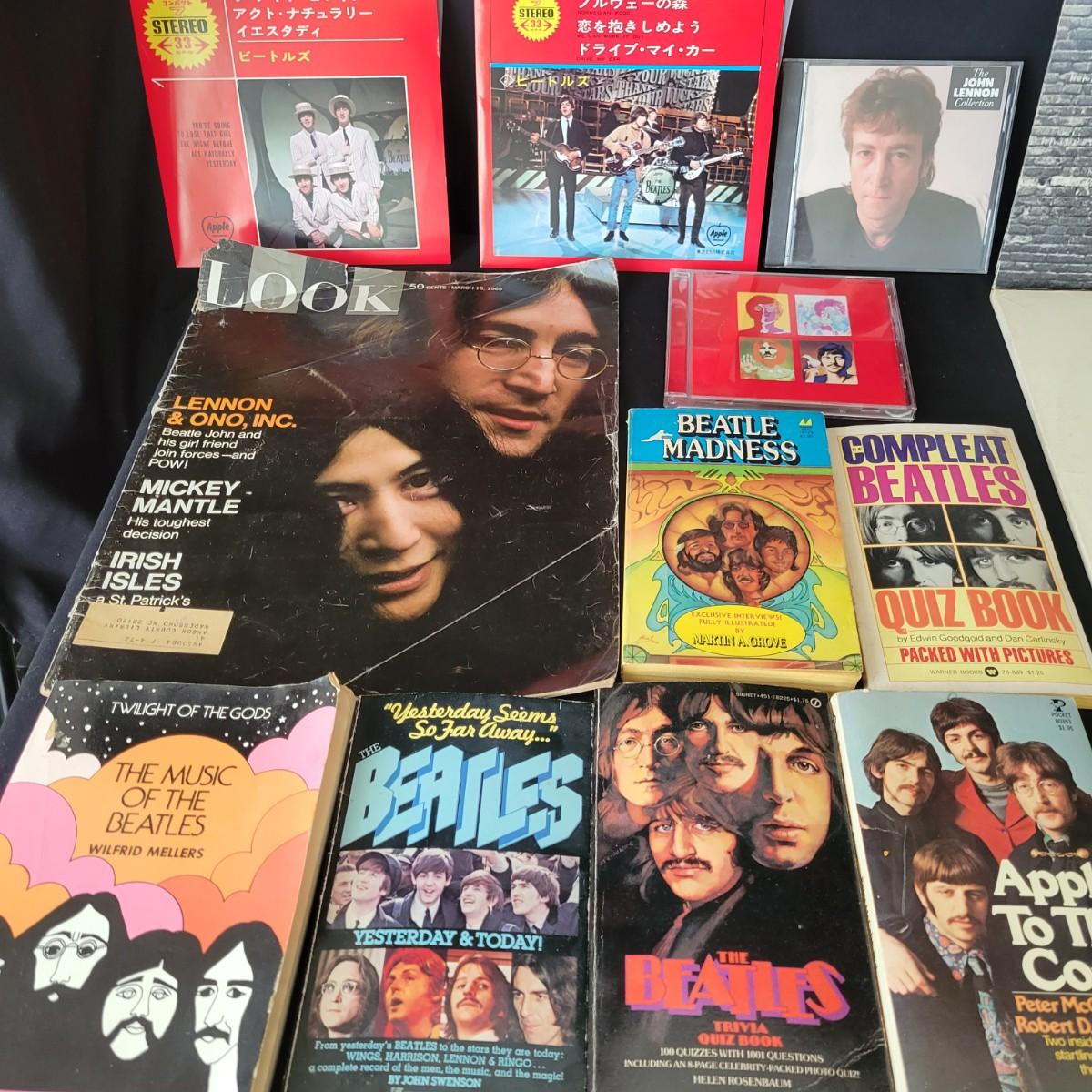An assortment of The Beatles vinyl, CDs, books and more. Over a dozen Beatles and solo albums, including two Japanese released 33s. Two CDs, seven books and a magazine. The illustrated albums binding is falling apart. Vinyl has scratches, but overall appear in good condition. Shipping available