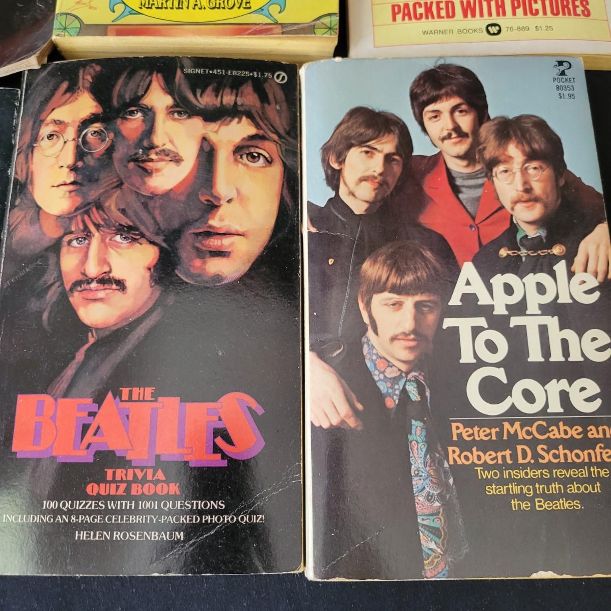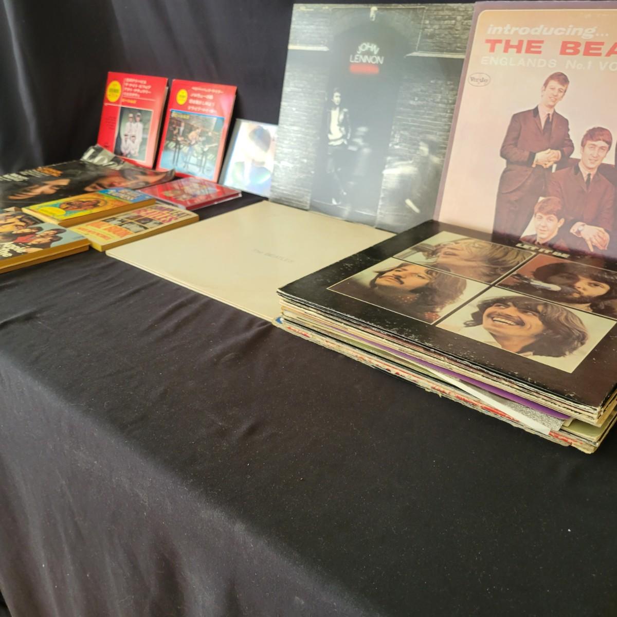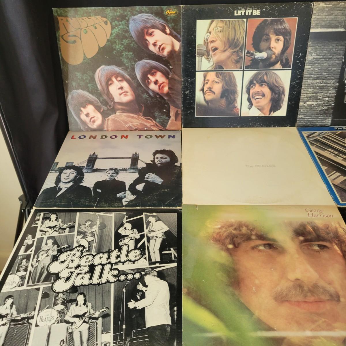 An assortment of The Beatles vinyl, CDs, books and more. Over a dozen Beatles and solo albums, including two Japanese released 33s. Two CDs, seven books and a magazine. The illustrated albums binding is falling apart. Vinyl has scratches, but overall appear in good condition. Shipping available