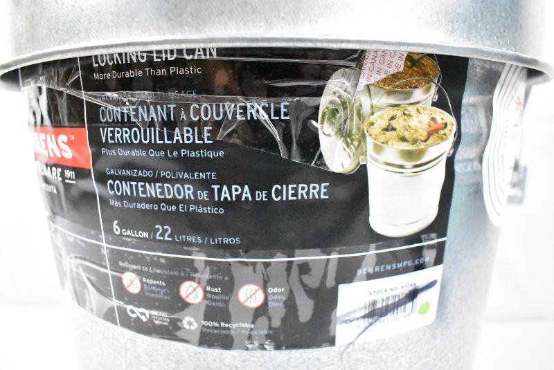 Behrens 6-Gallon Galvanized Steel Locking Lid Storage Can. Dented