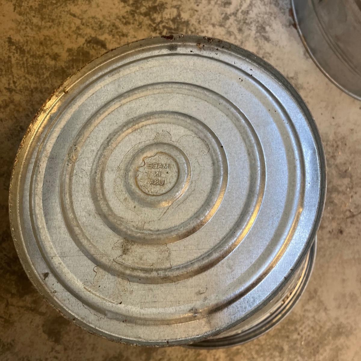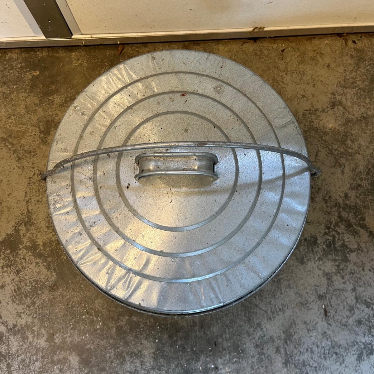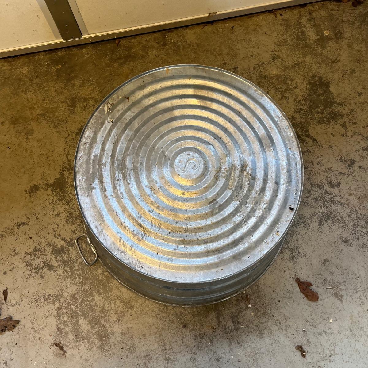 Lot includes a Behrens galvanized Round tub and a Behrens six gallon galvanized garbage pail. Tub measures 23”D x 11” tall.