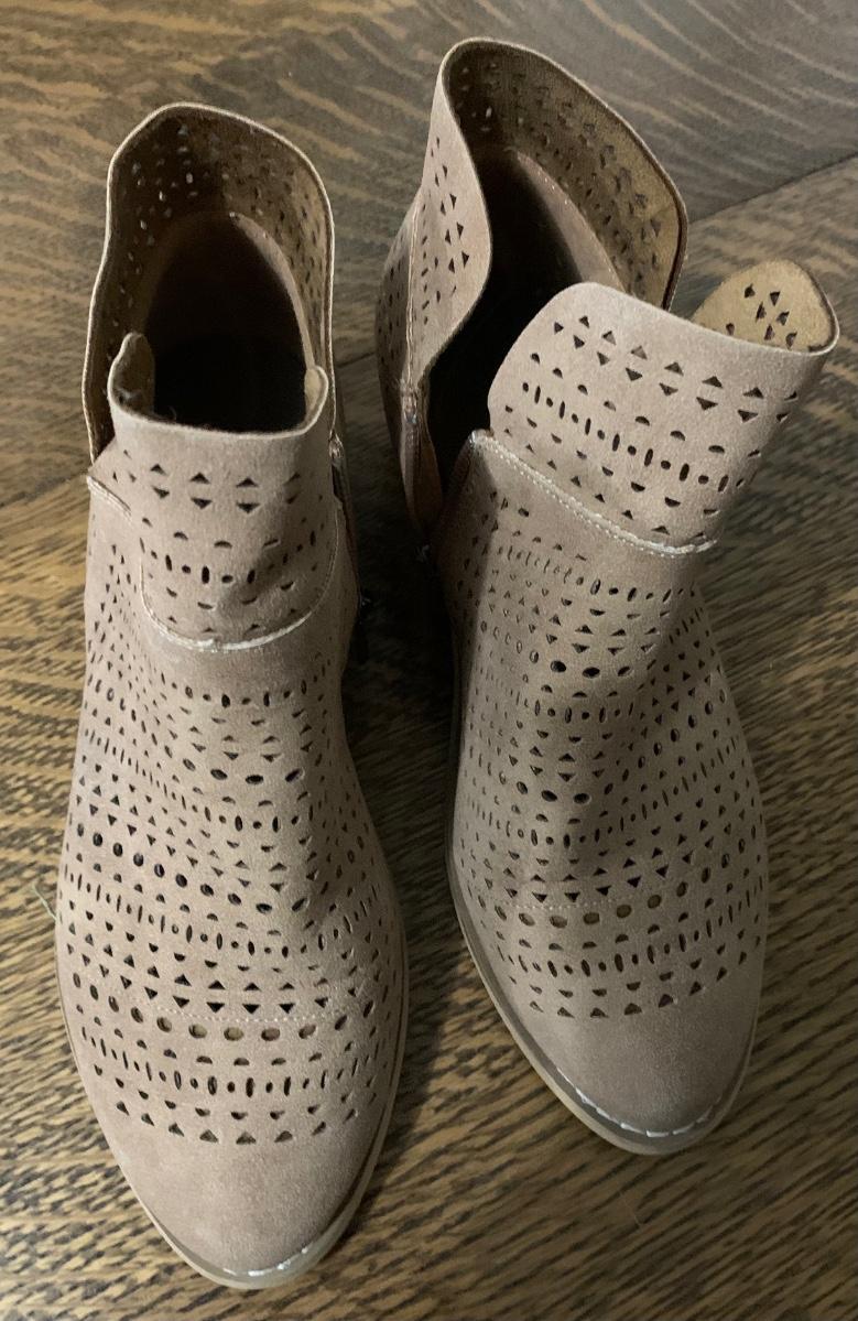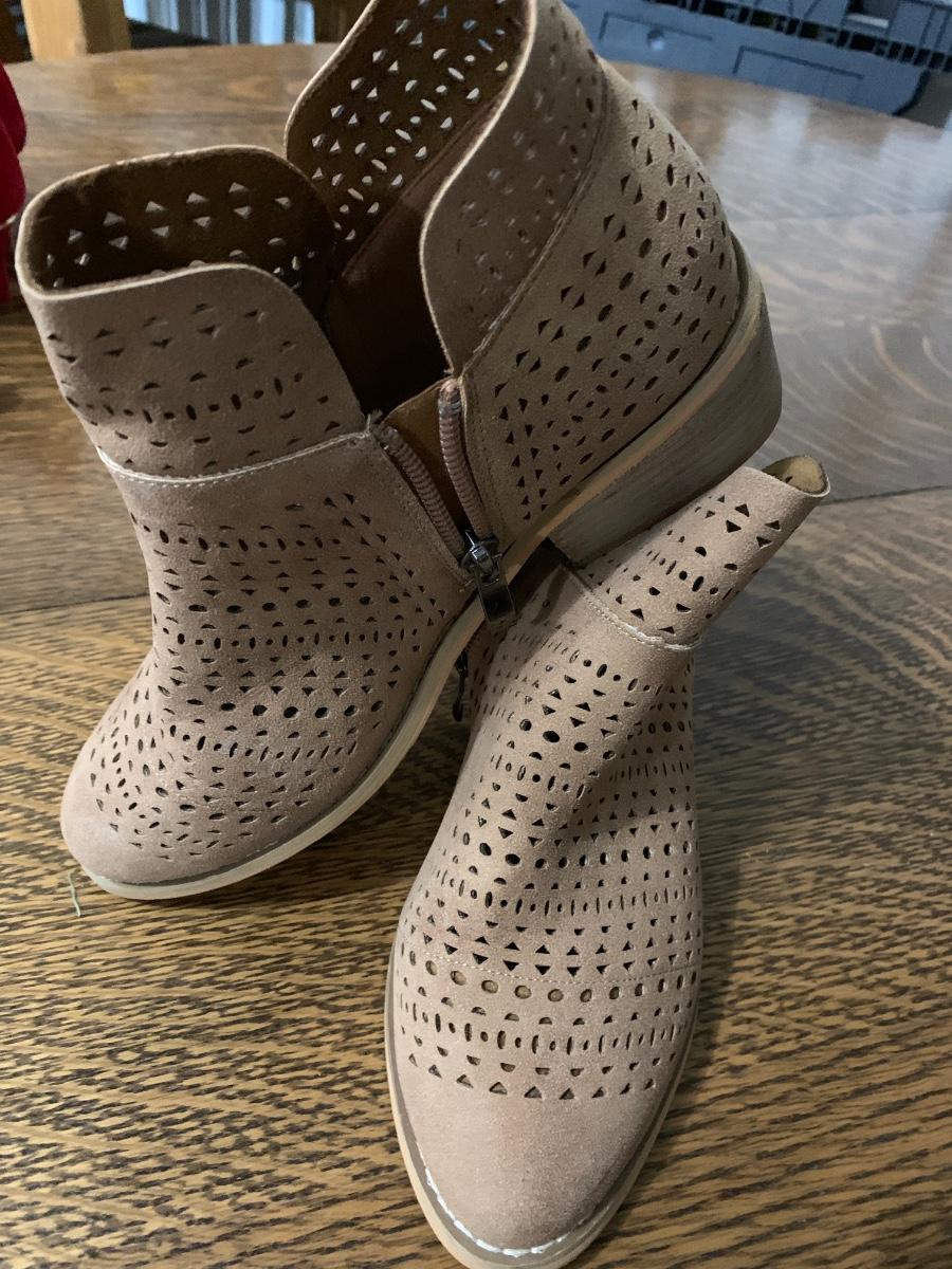 Size 6 beige booties in nearly new condition. Side zip. Comfy shoes!