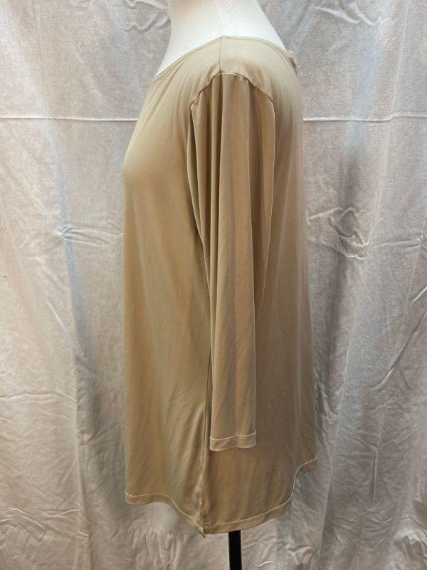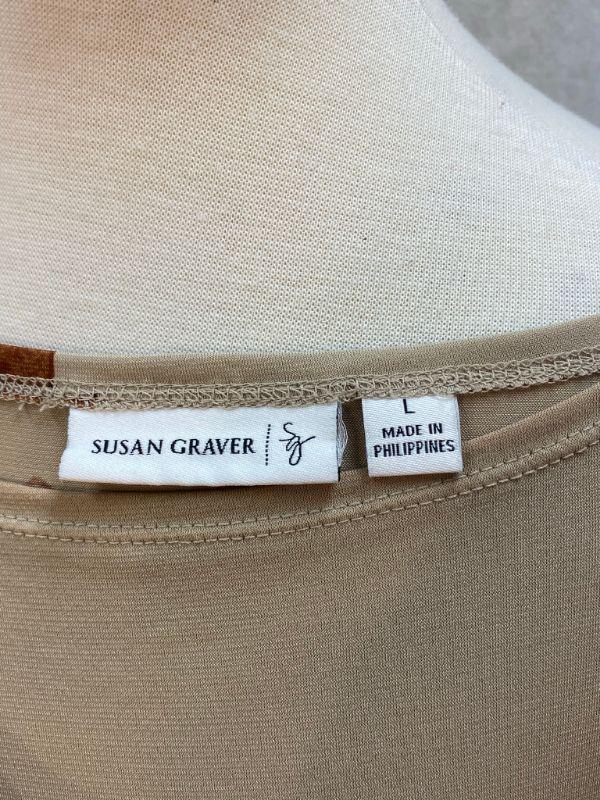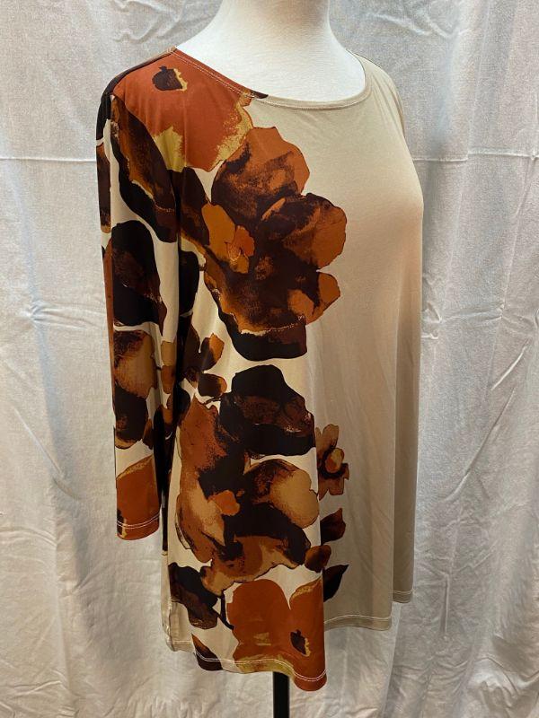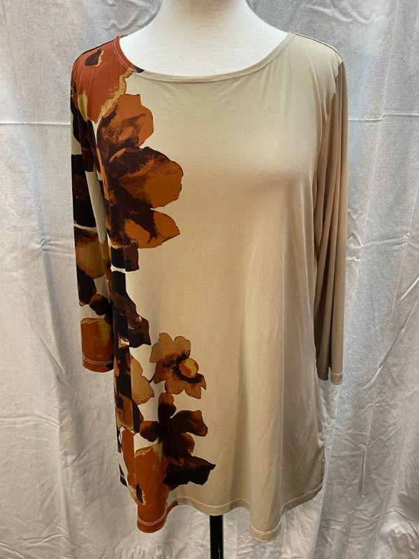 Susan Graver light beige tunic. Beige with a darker brown floral design down the right side. Good condition. Size large.