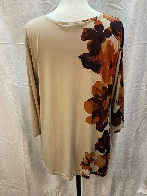 Beige Floral Print Tunic Blouse by Susan Graver Size Large YD#020-1220-02162