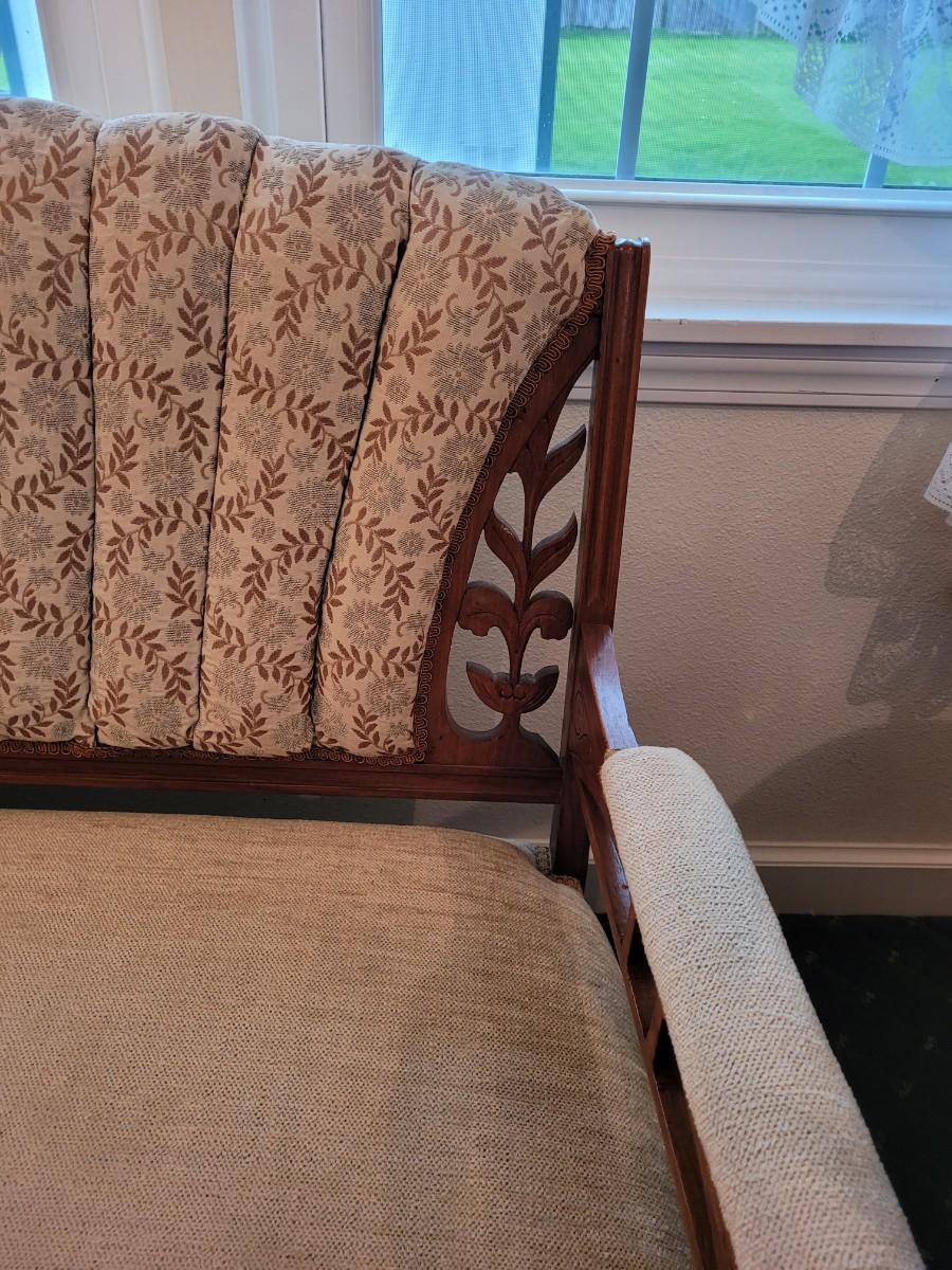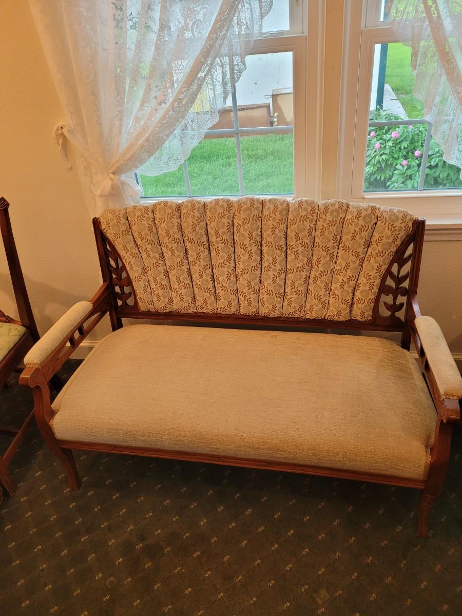 Beige Floral Print with Wood Back Settee
