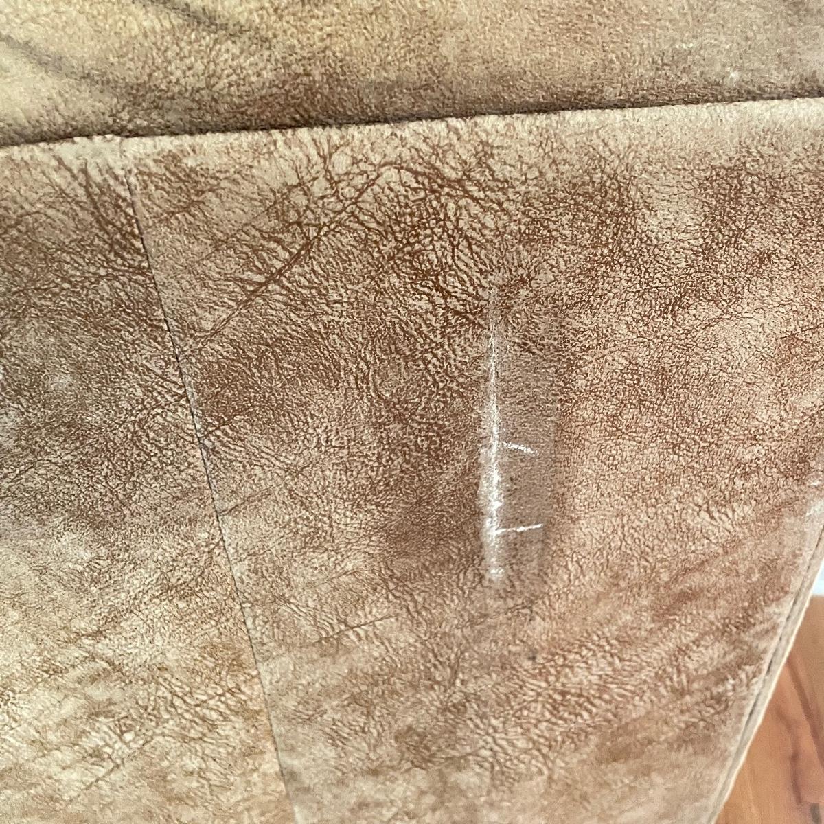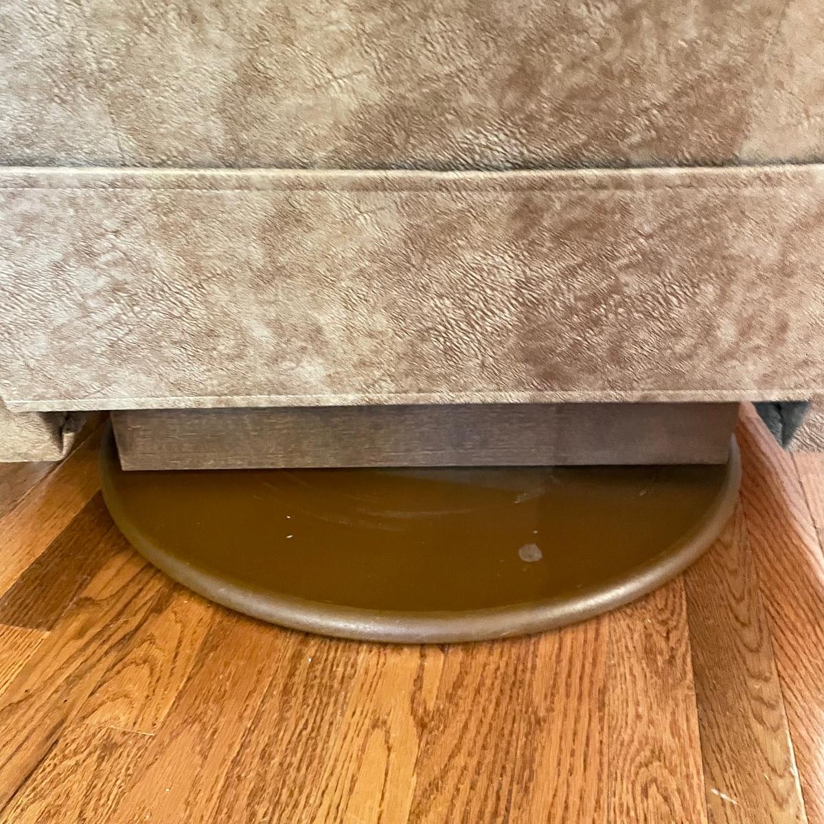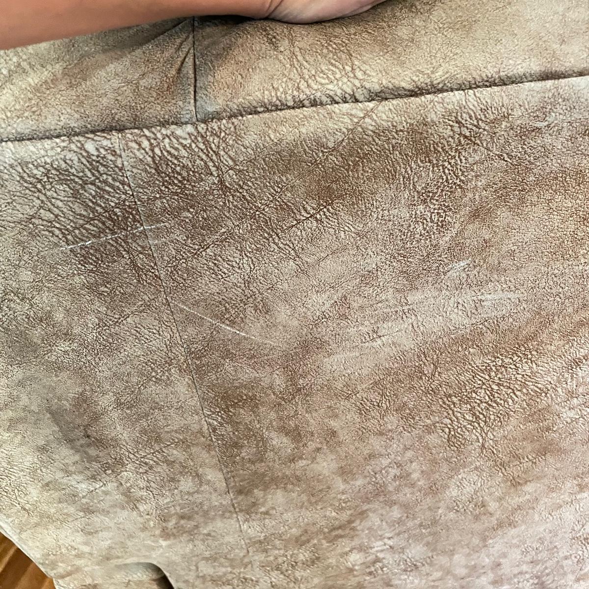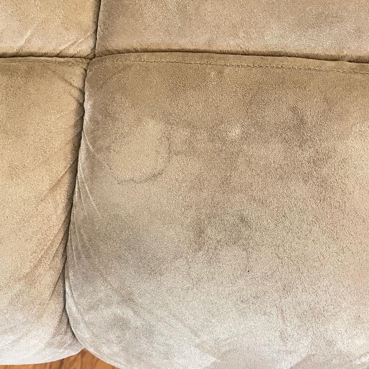 Comfortable beige LaZboy recliner with a swivel base. The soft upholstery appears to be a suede-like microfiber. Recliner has a hardly noticeable water ring on the seat and what appears to be paint rubbed on the back seat from motion. Chair reclines and swivels easily. LaZboy measures approximately 40” x 36” x 42” with a seat height at 19”. See images. Local pick up only. Please bring help to load.