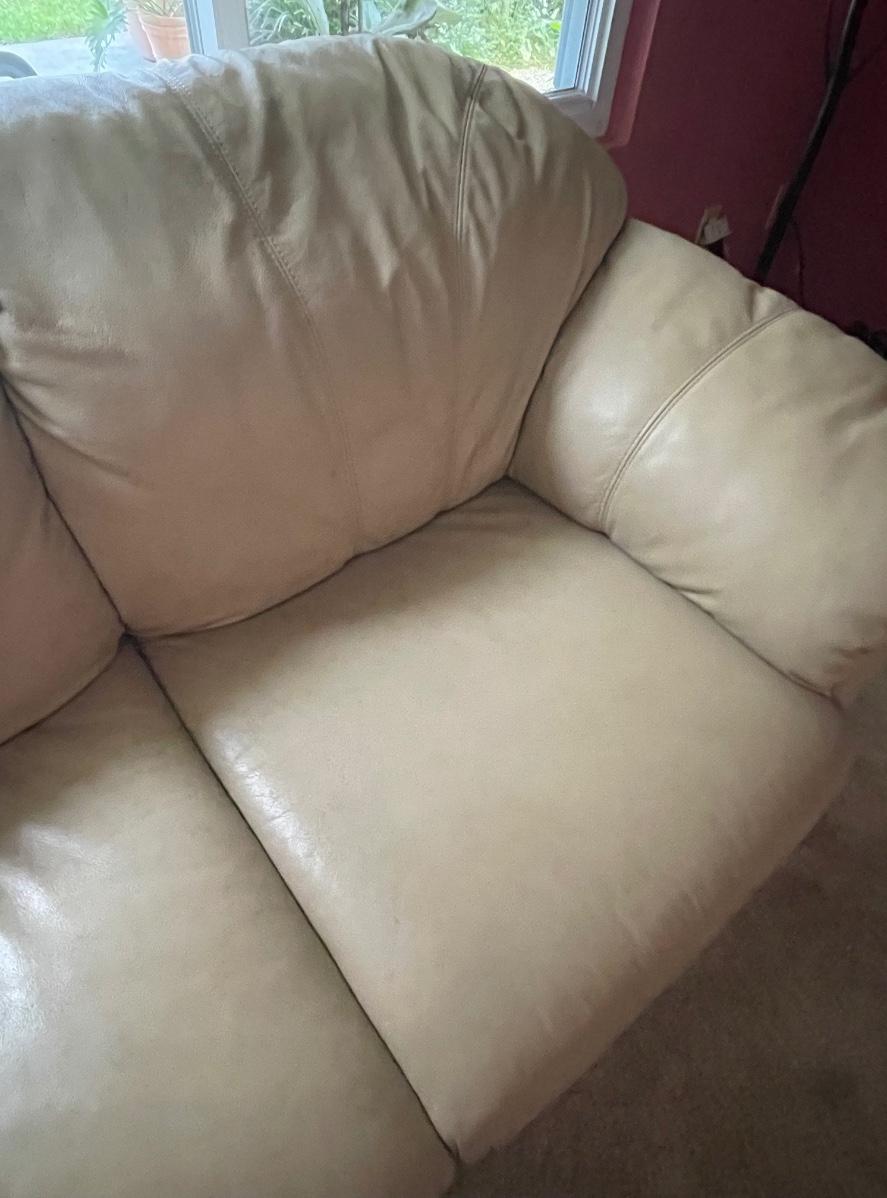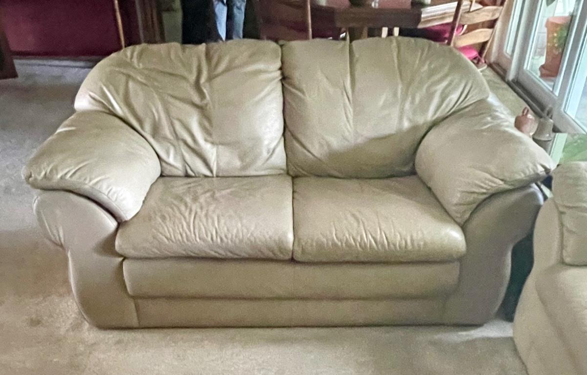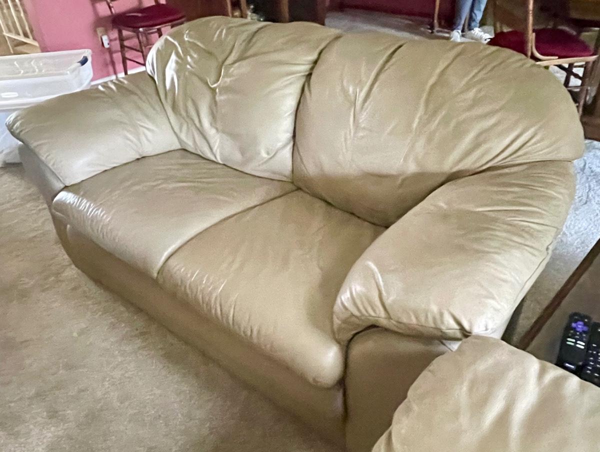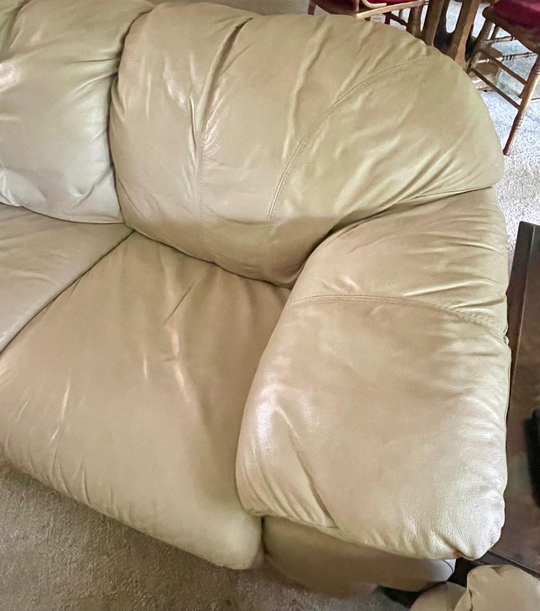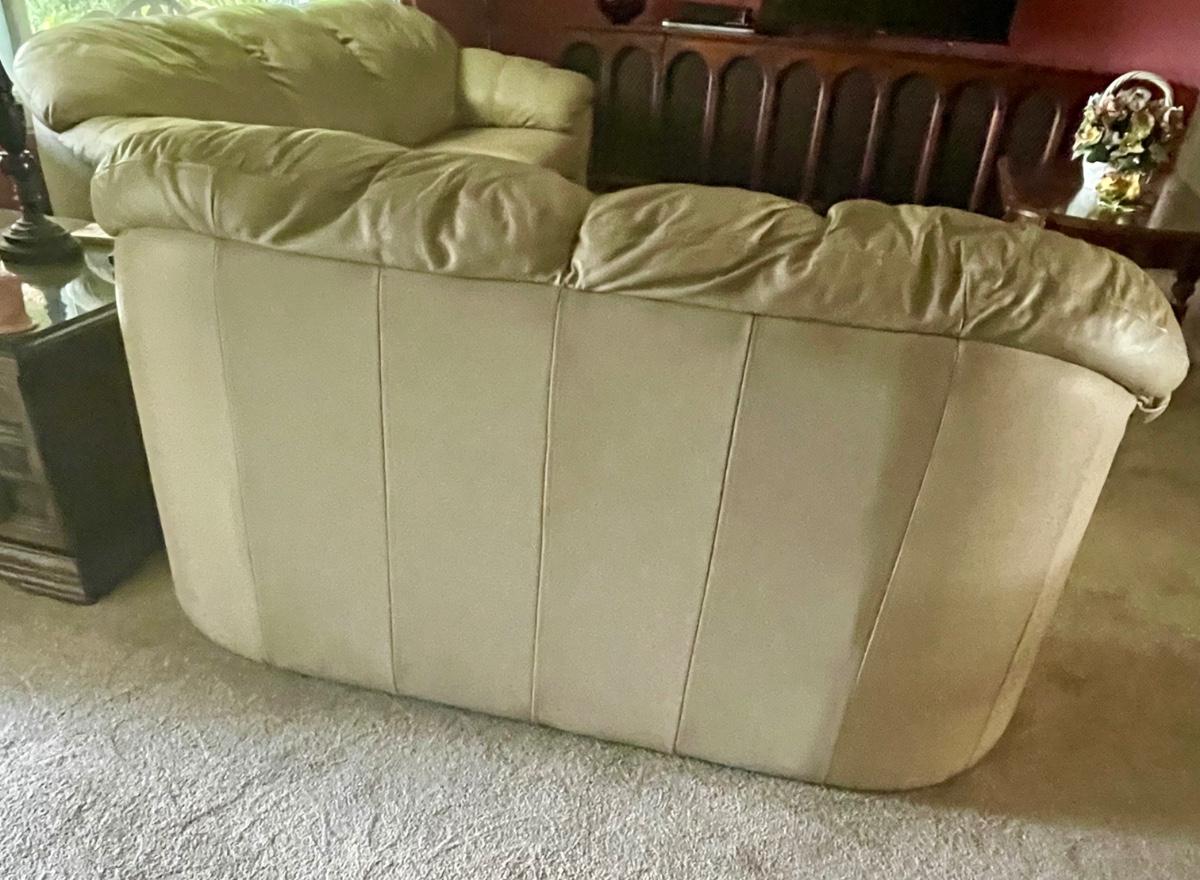 Matches leather recliner available on this auction. Approx 72” long and 36” deep.