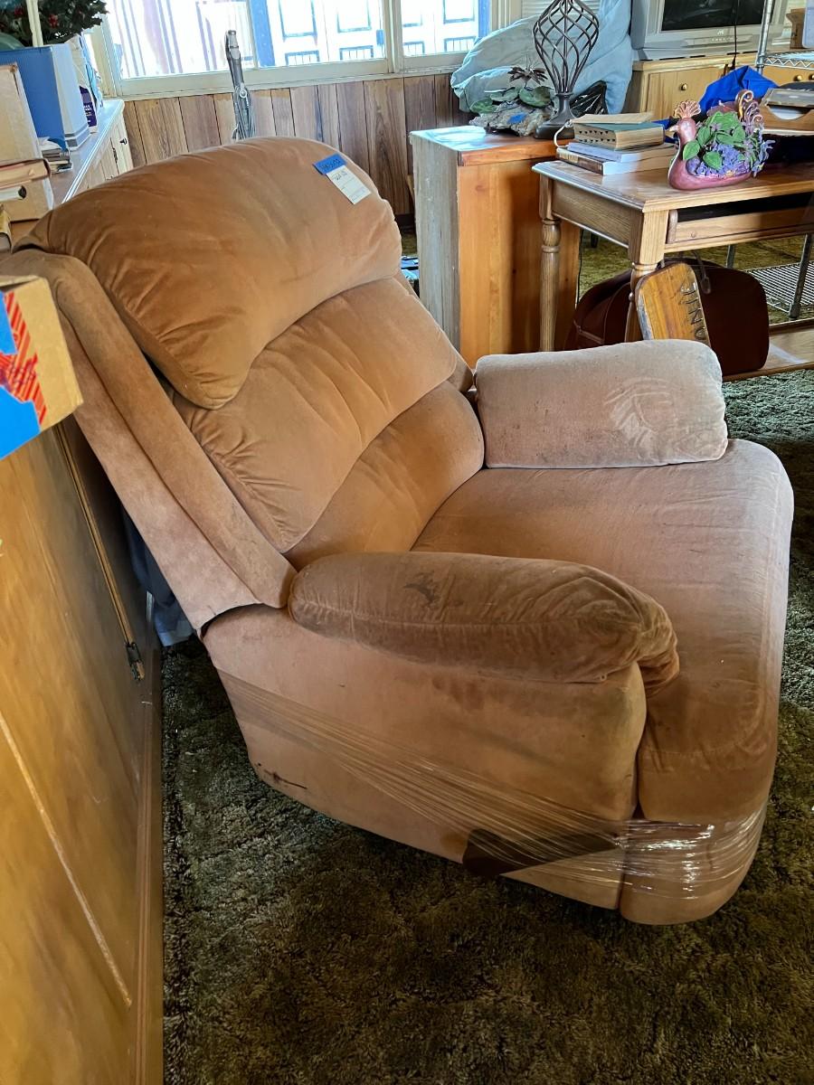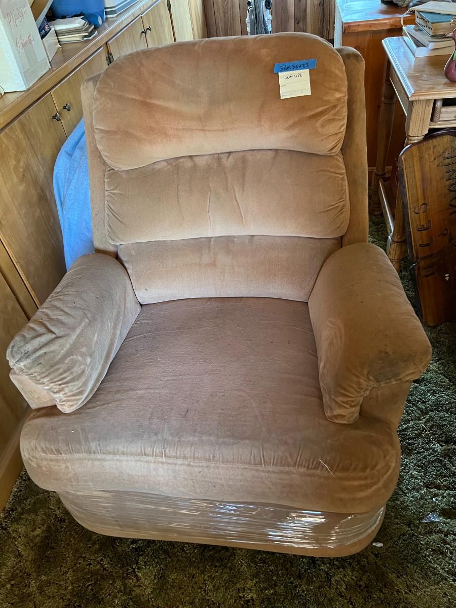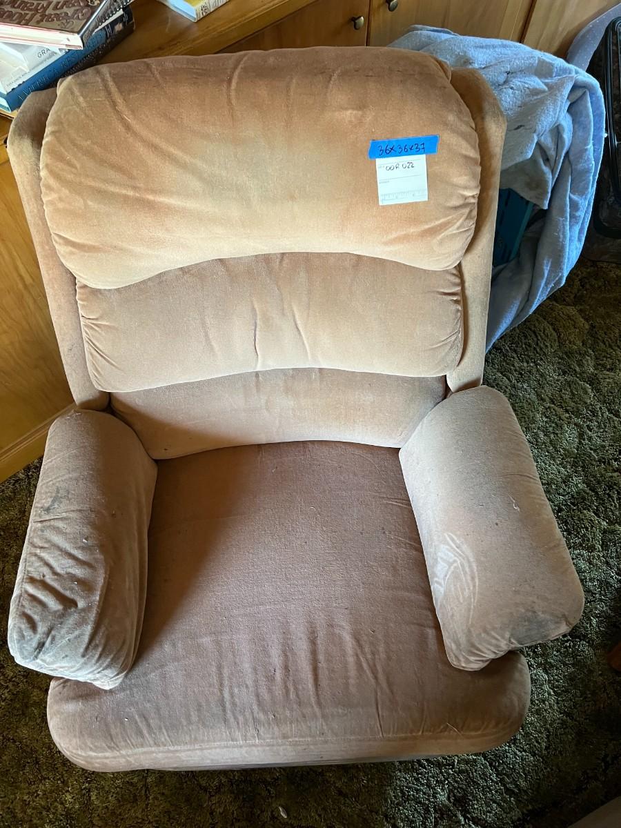 Beige recliner, measuring 36 x 36 x 37, needs some cleaning
