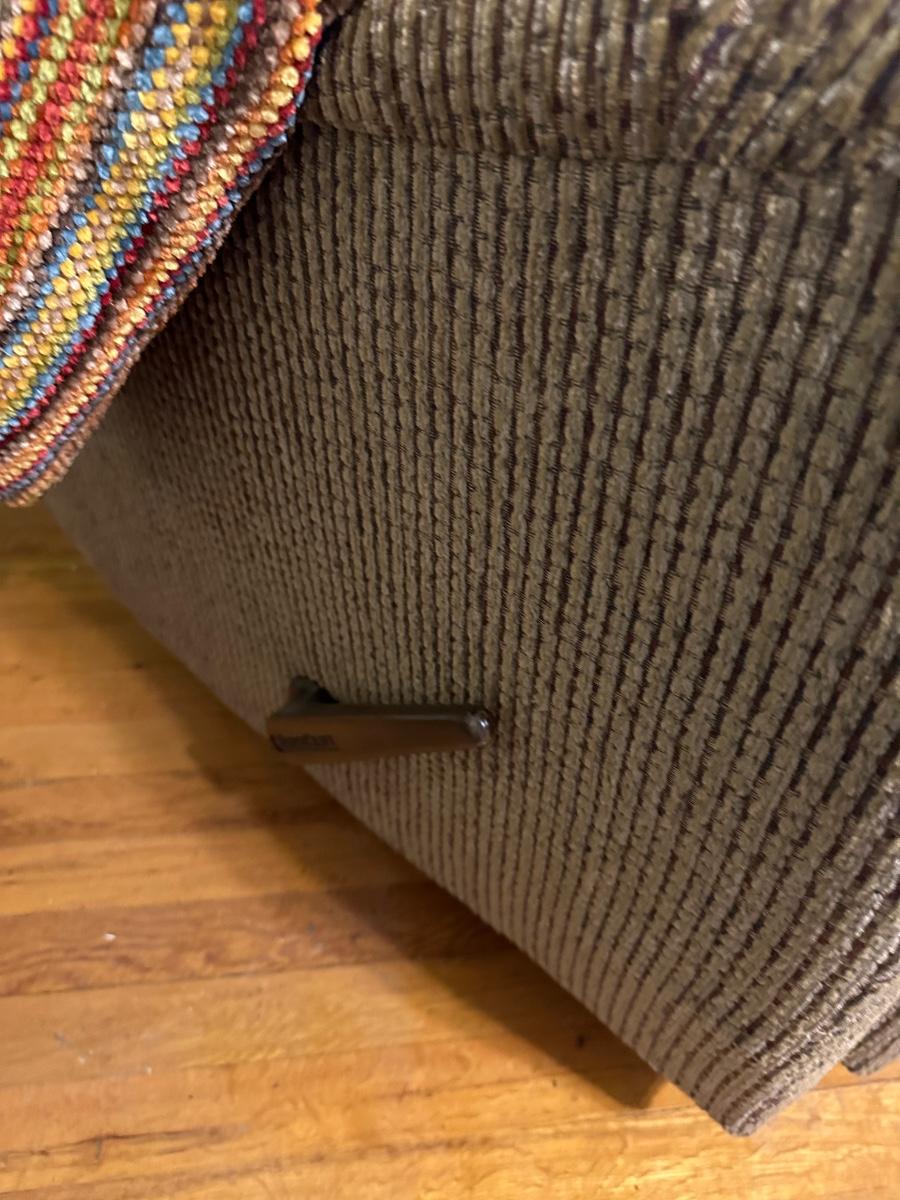 BEIGE RECLINER LOCATED ON SECOND FLOOR OF HOME, THROW