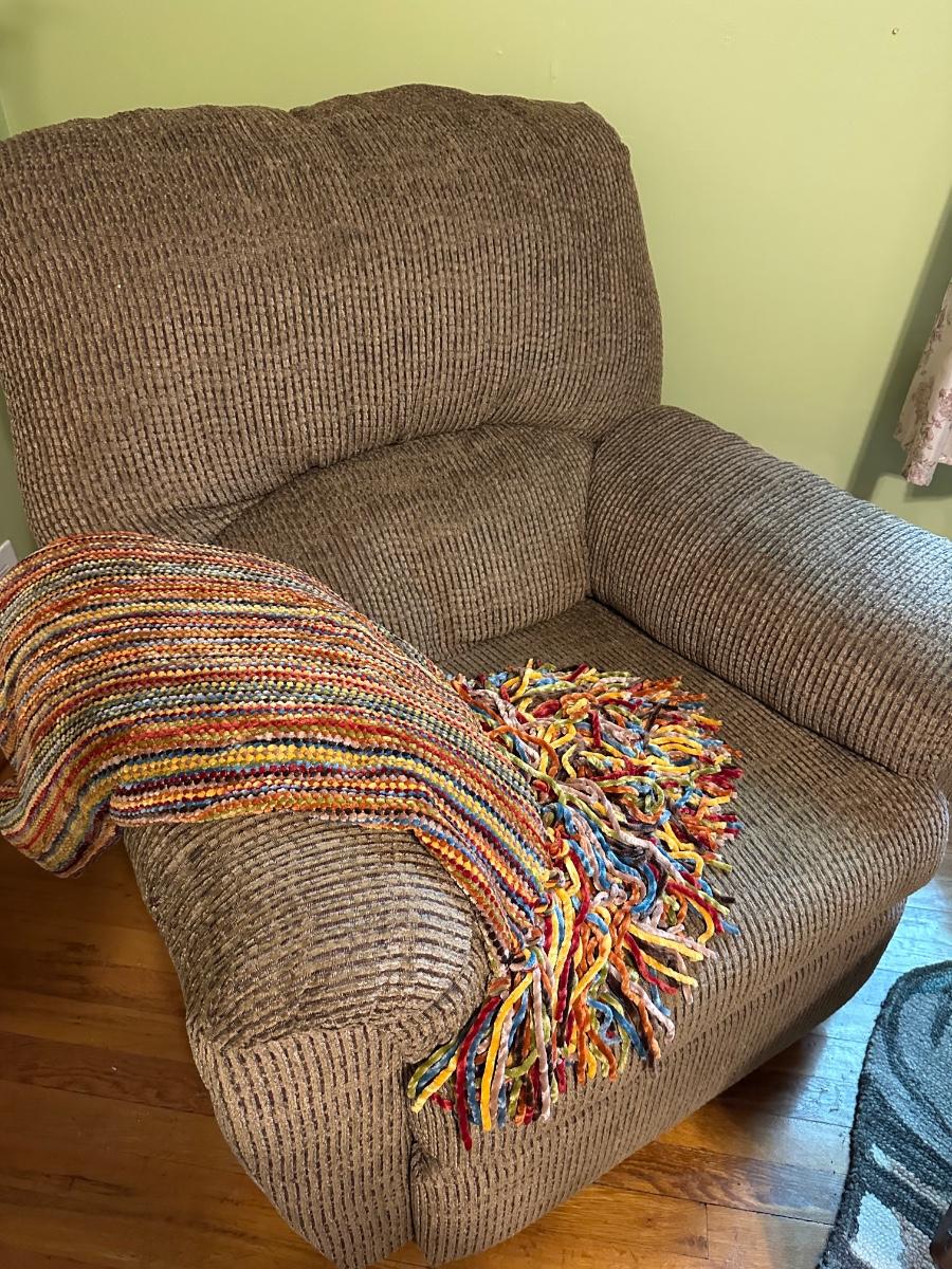 BEIGE RECLINER, THROW