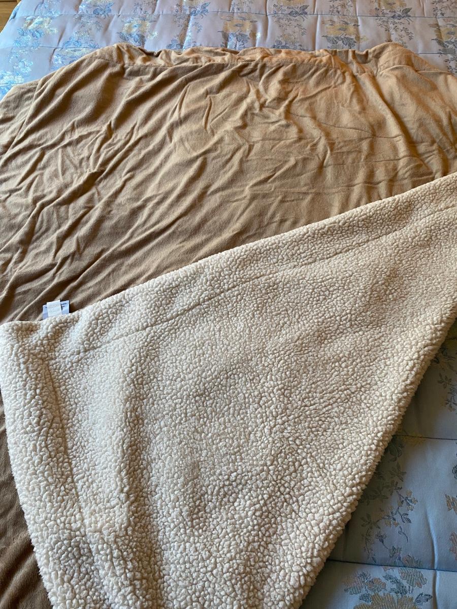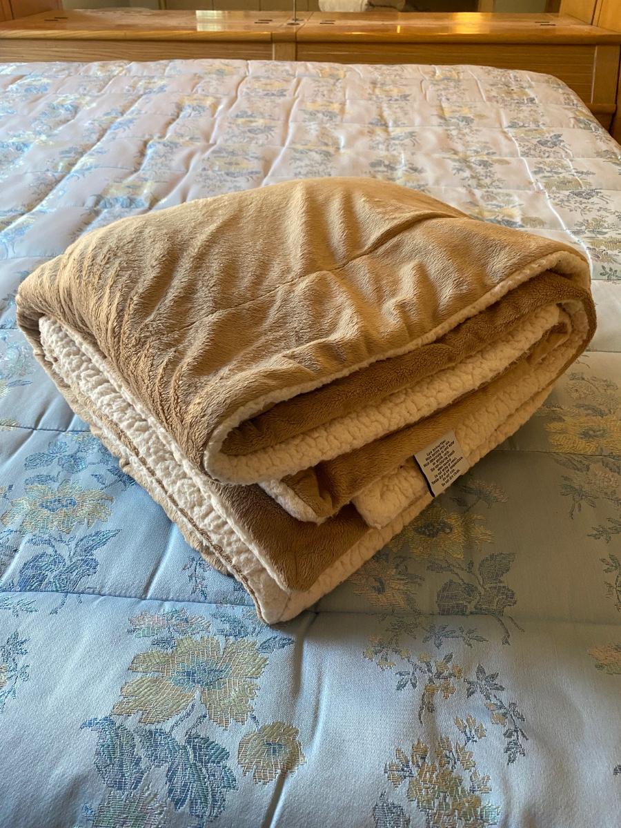 Beige Tan Sherpa Fleece Throw Blanket. In good condition, no spots or stains.