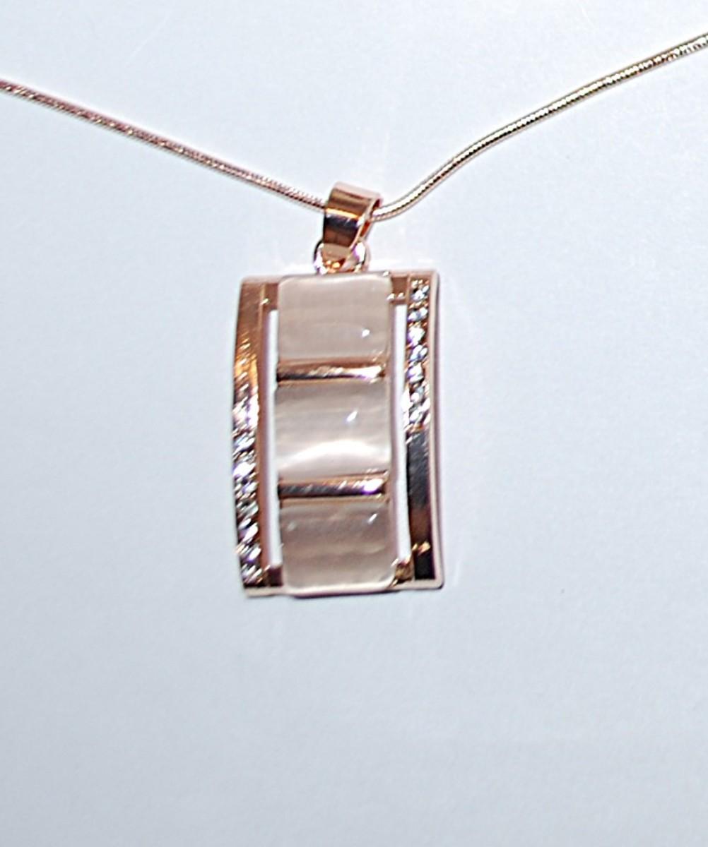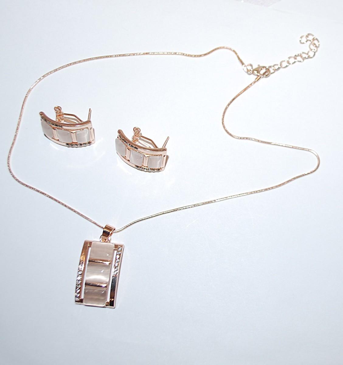 Beige Translucent Squares Combo PENDANT/ NECKLACE (18" L) & EARRINGS JEWELRY SET with a Bejeweled Setting, Lobster Clasp + Matching Earrings Pair with SNAP-OVER Stud Post