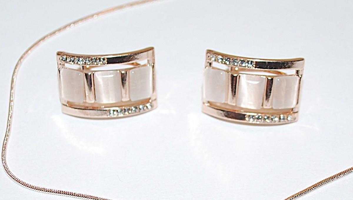 Beige Translucent Squares Combo PENDANT/ NECKLACE (18" L) & EARRINGS JEWELRY SET with a Bejeweled Setting, Lobster Clasp + Matching Earrings Pair with SNAP-OVER Stud Post