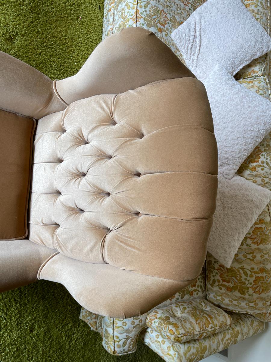 Beige Tufted Wingback Chair with Queen Anne Style Legs