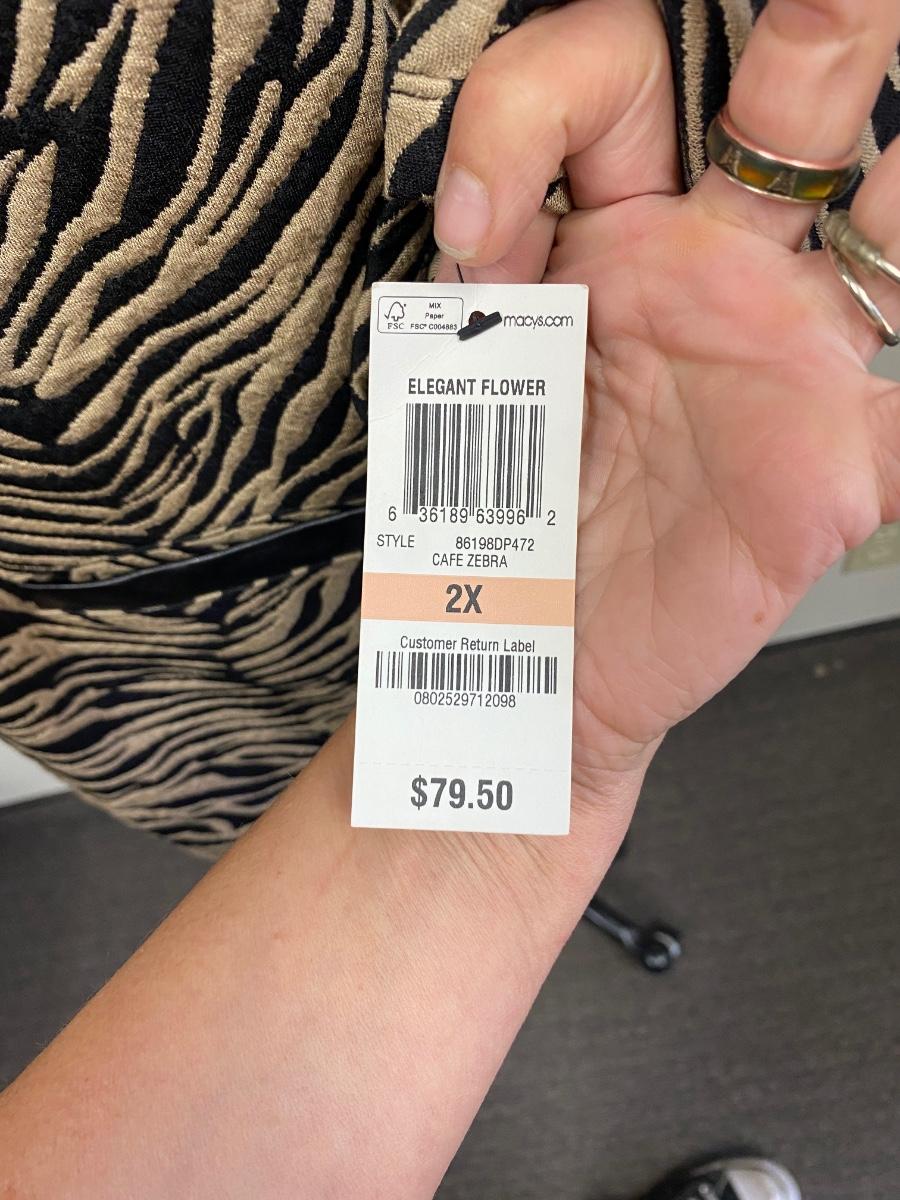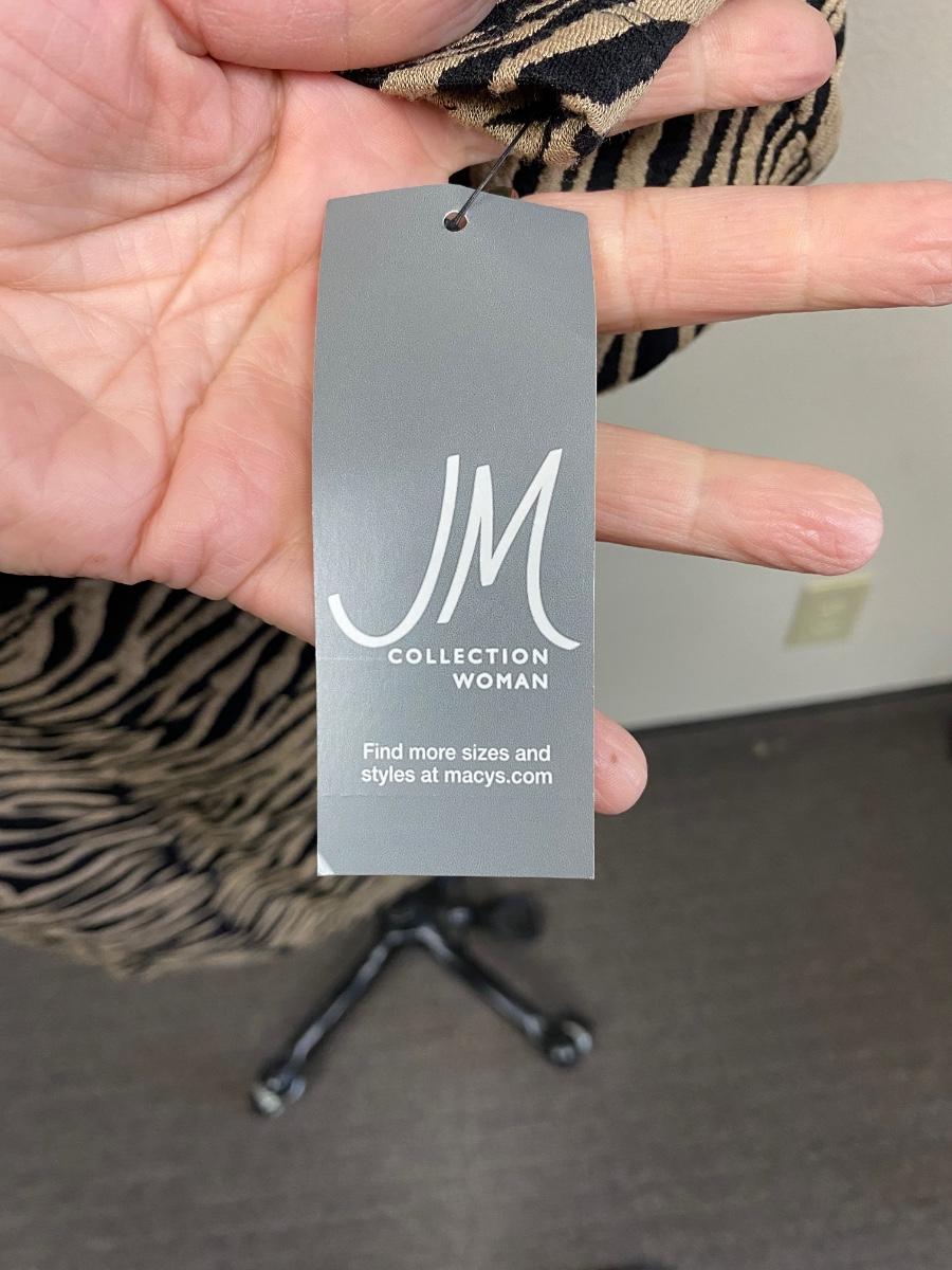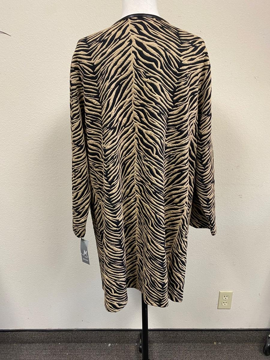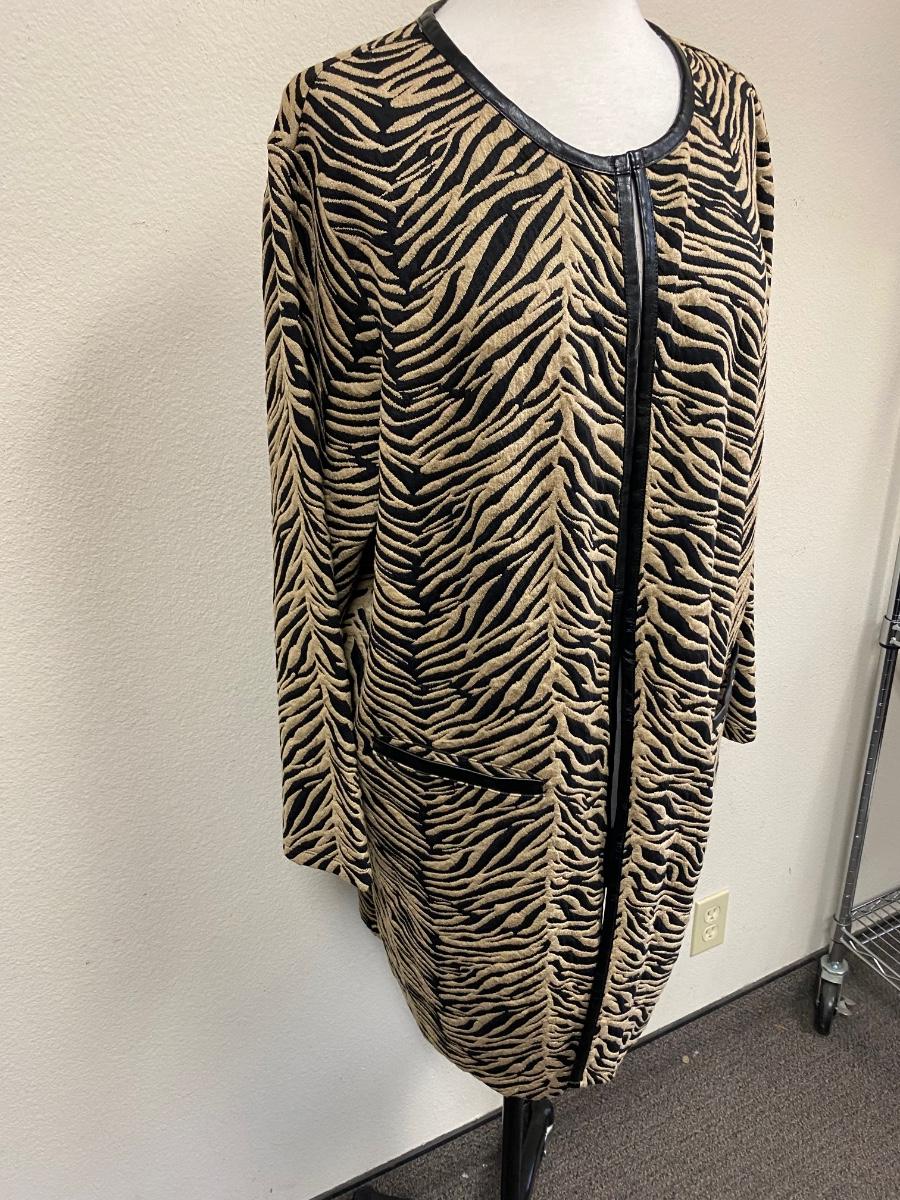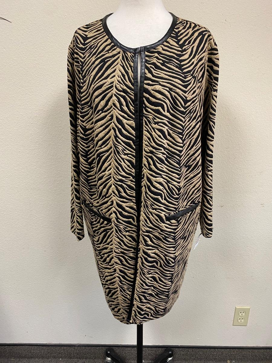 Beige Zebra Striped Jacket Duster with Tags Size 2x. In good condition. Front pockets are partially stitched closed but can be opened if desired. Mid-thigh/knee length.