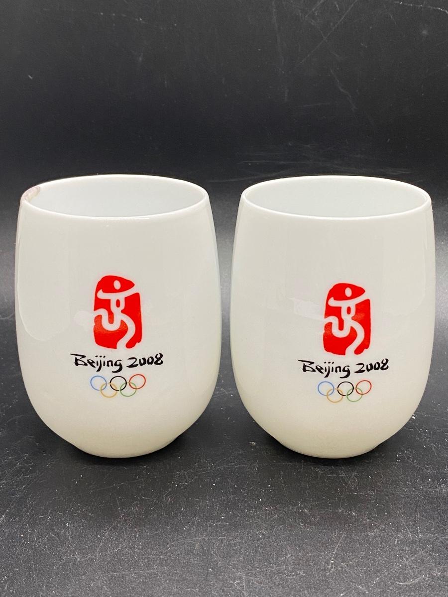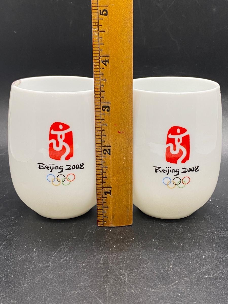 2008 Beijing Olympics souvenir cup set. Featuring mascots YingYing and JingJing. A little over 3" size. The inside lip of the YingYing cup has a discolored spot, believe it might be a cracked piece. Both display nicely.
