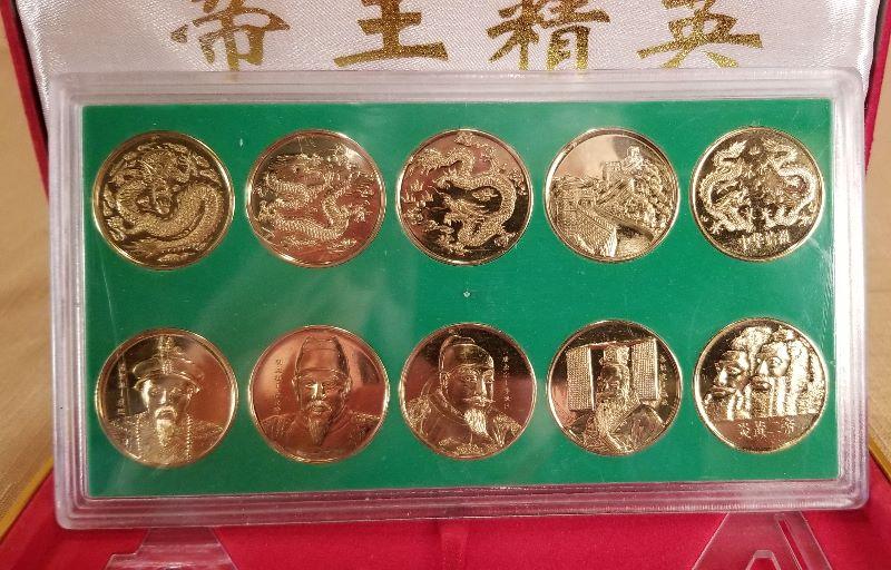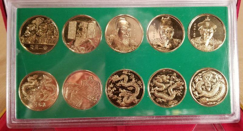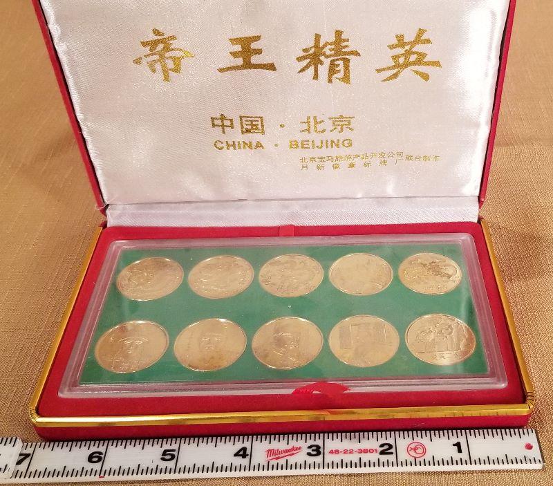 Beijing ““ China Coin Display Set. Each coin is 1 1/8-inch in diameter and in an acrylic protective cover. Red velvet box. Great souvenir item from Asian travels.