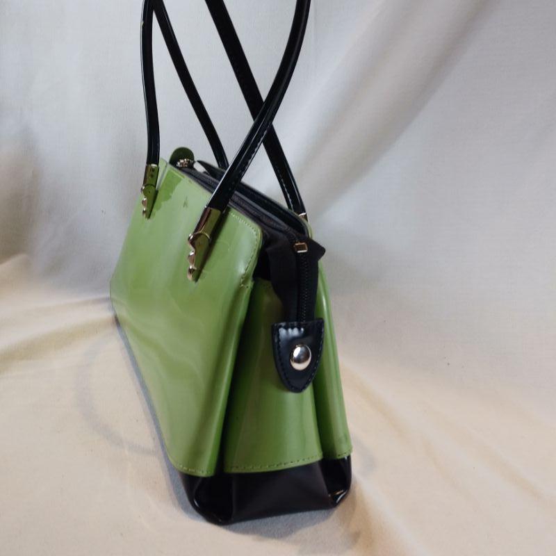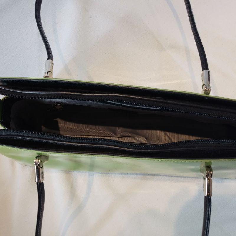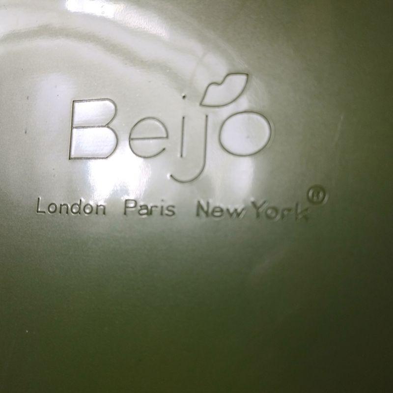 A lovely green Beijo Designer Purse. Engraved on front: Beijo - London.Paris.New York. Appears unused and in very good condition. It is 13-inches wide X 6-inches tall plus handles. Retails for about $79.00. A cool color for hot days....or a hot date!