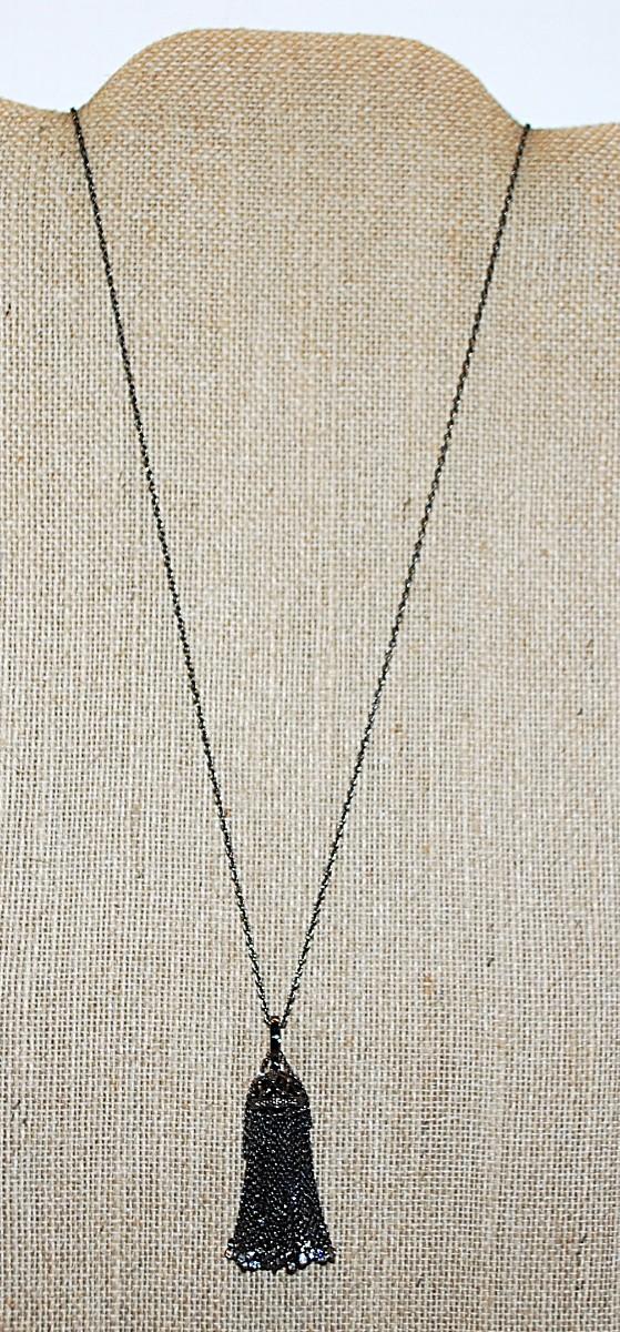 Bejeweled BLACK DANGLE & HOOK NECKLACE with Black Chain and Lobster Clasp 30" L
