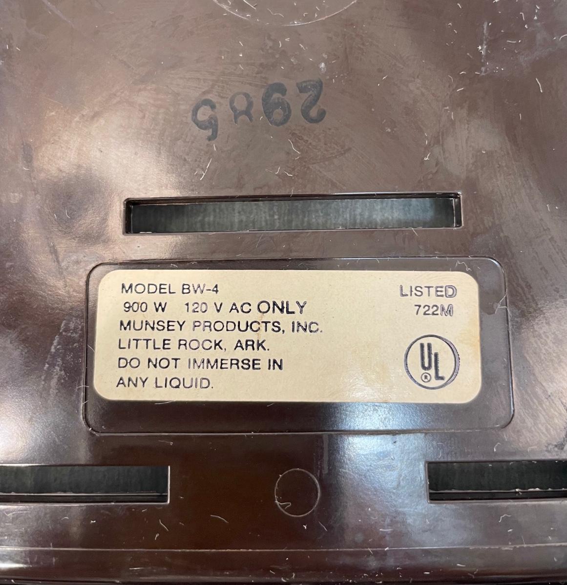 Used Belgian Waffler, model number BW-4, made by Munsey Products in Little Rock, Arkansas. Very clean, tested, wheats up quickly.