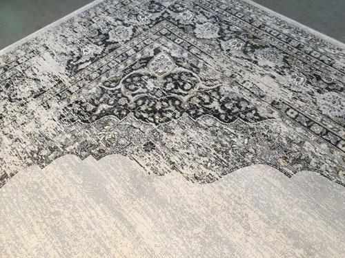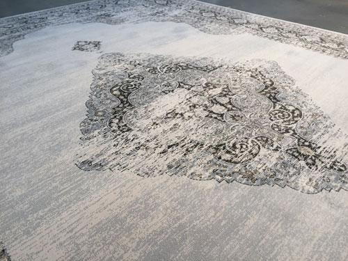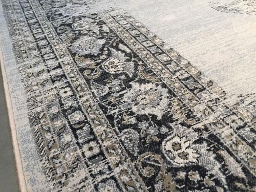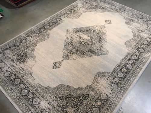 8x11.2 Premium Quality Medallion Vintage Persian Kerman Design Brand Name Rug, in Ivory, Grey , and Charcoal Colors ,made of Durable and easy to care, Polypropylene Pile Power Loomed in Euro Belgium.