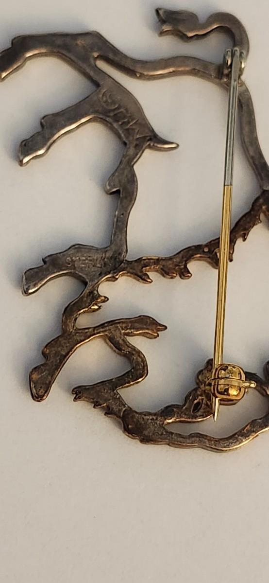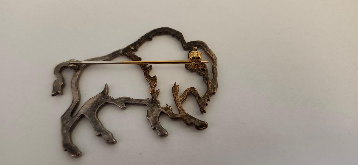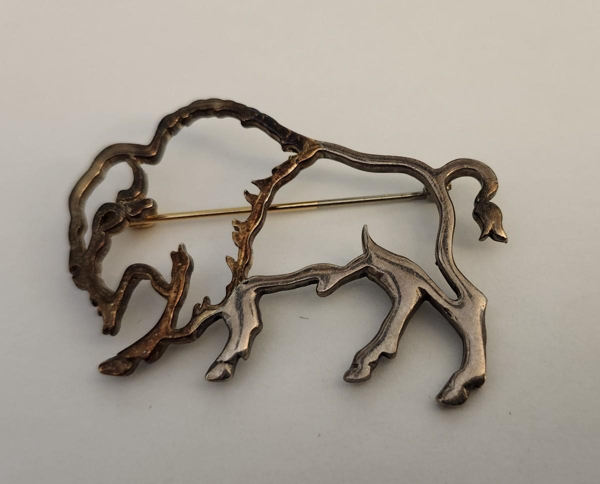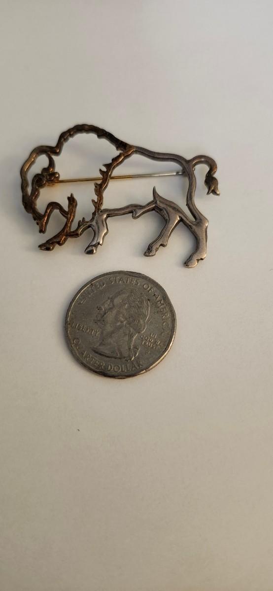 Navajo Sterling silver buffalo pin with gold wash, signed BN
