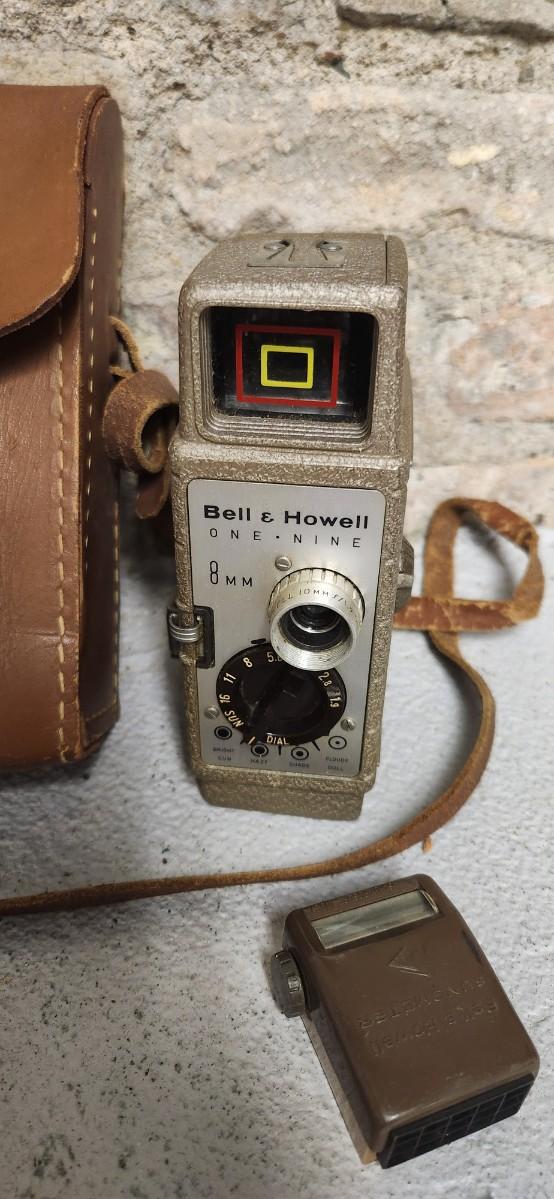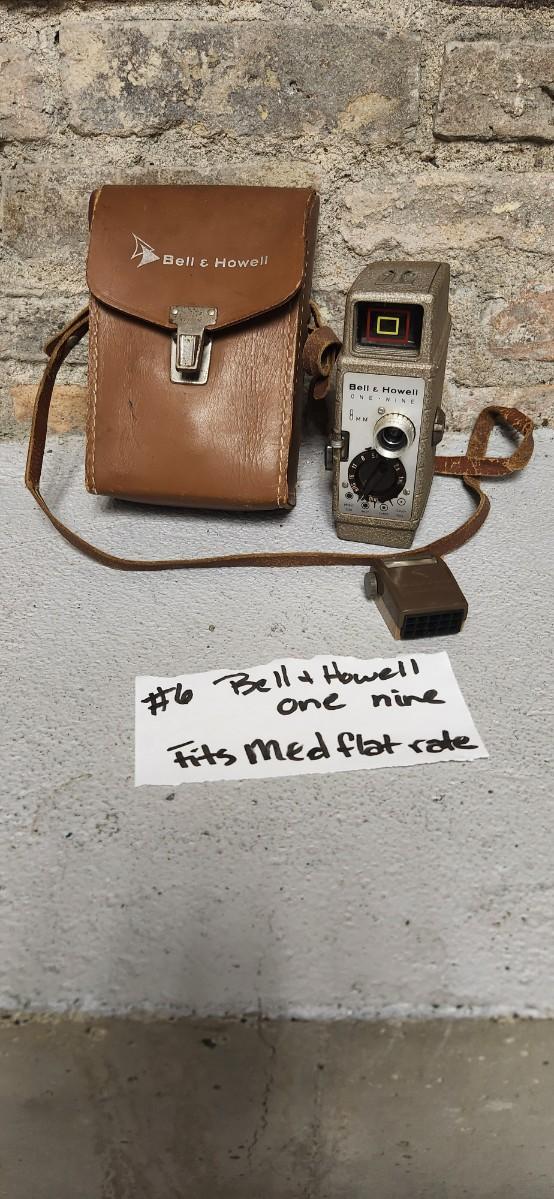 Metal Bell and Howell one nine camera in case with light attachment. Fit a medium flat rate box