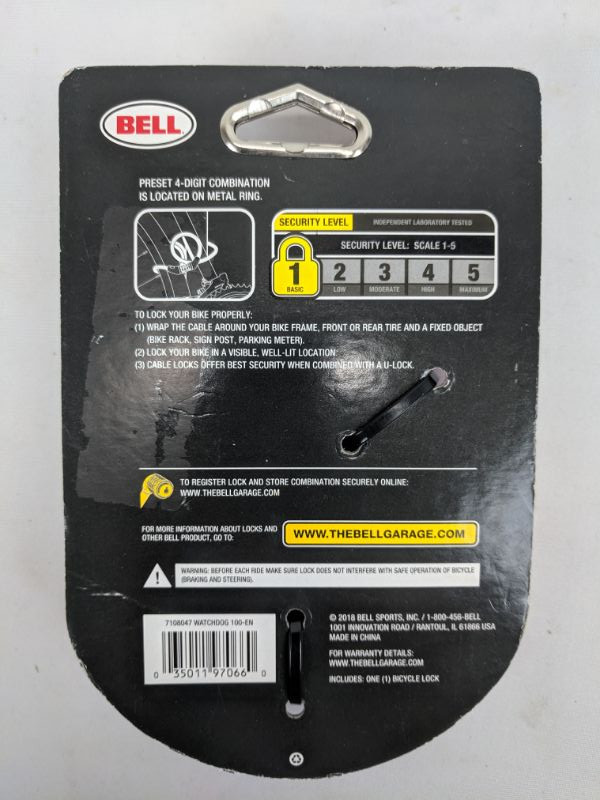 Bell Cable Lock 8 mm 5 Ft Length - New