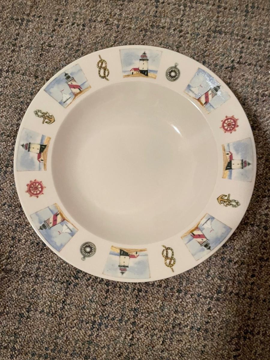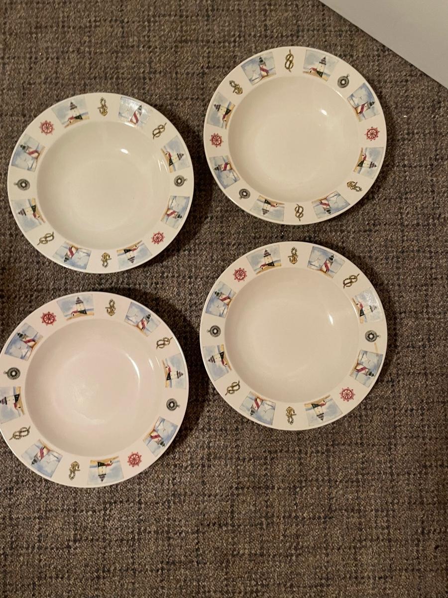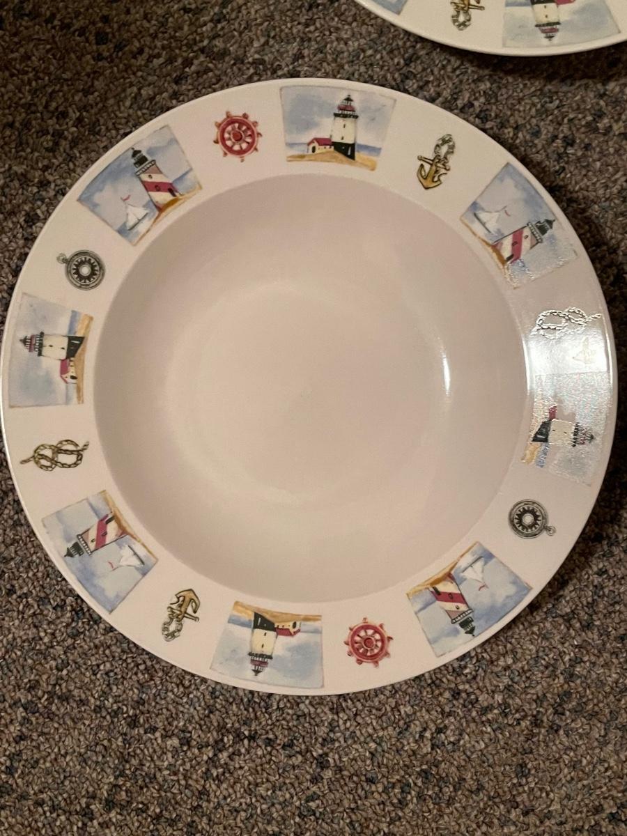 Gibson Lighthouse Soup Bowls Nautical Captains Wheel 9” Set Of 4