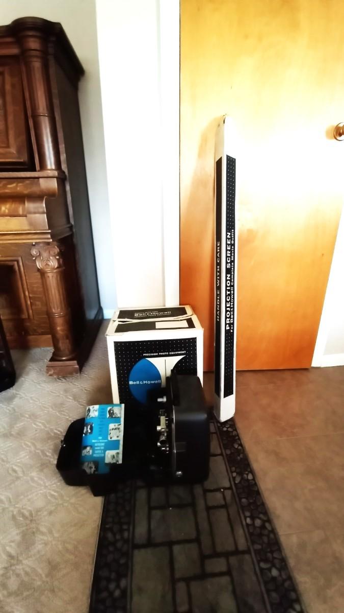 BELL & HOWELL PROJECTER MODEL 346 AND PROJECTION SCREEN