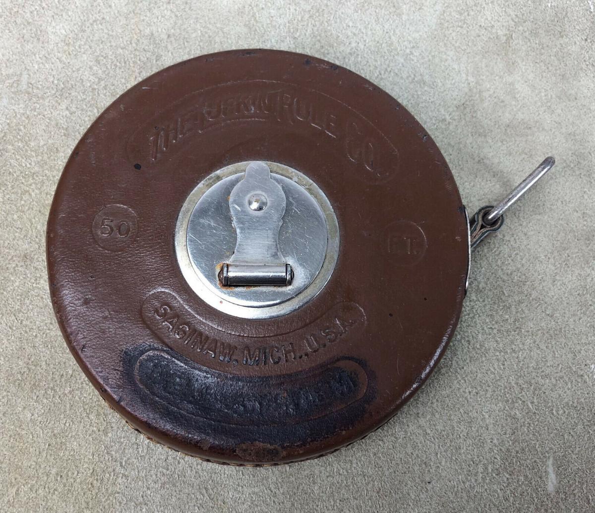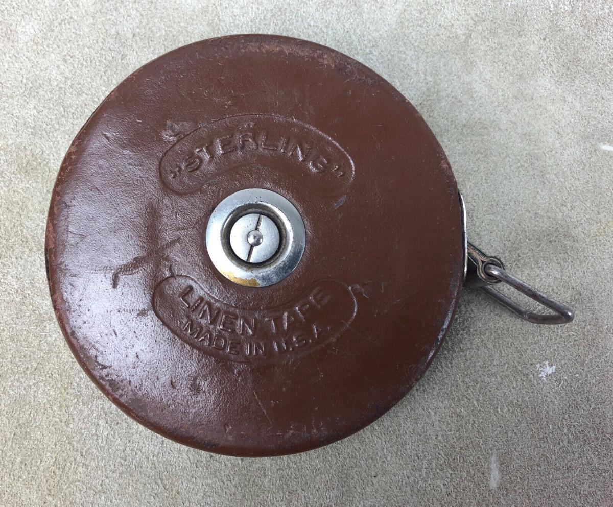 Here is a linesman's 50ft Non-Metallic Sterling Linen tape measure made for the BELL SYSTEM by the Lufkin Rule Co. of Saginaw, Michigan...Some normal use...Good condition..As shown...Retractable...This vintage measure is leather cased...Offered with no reserve...