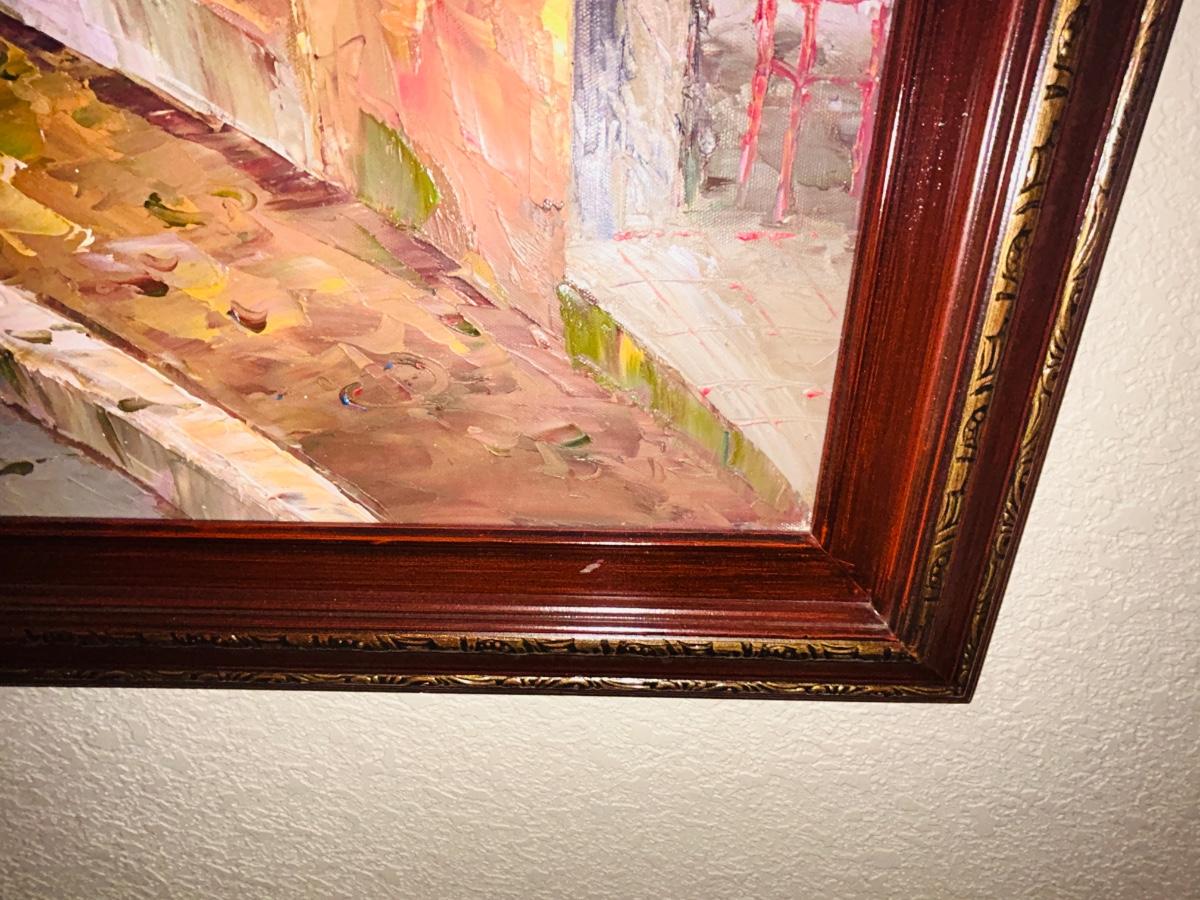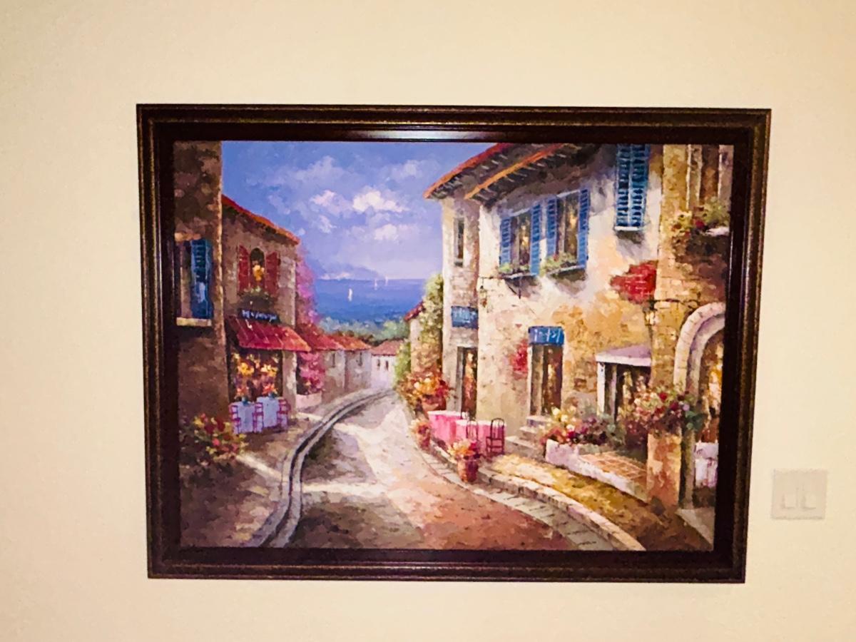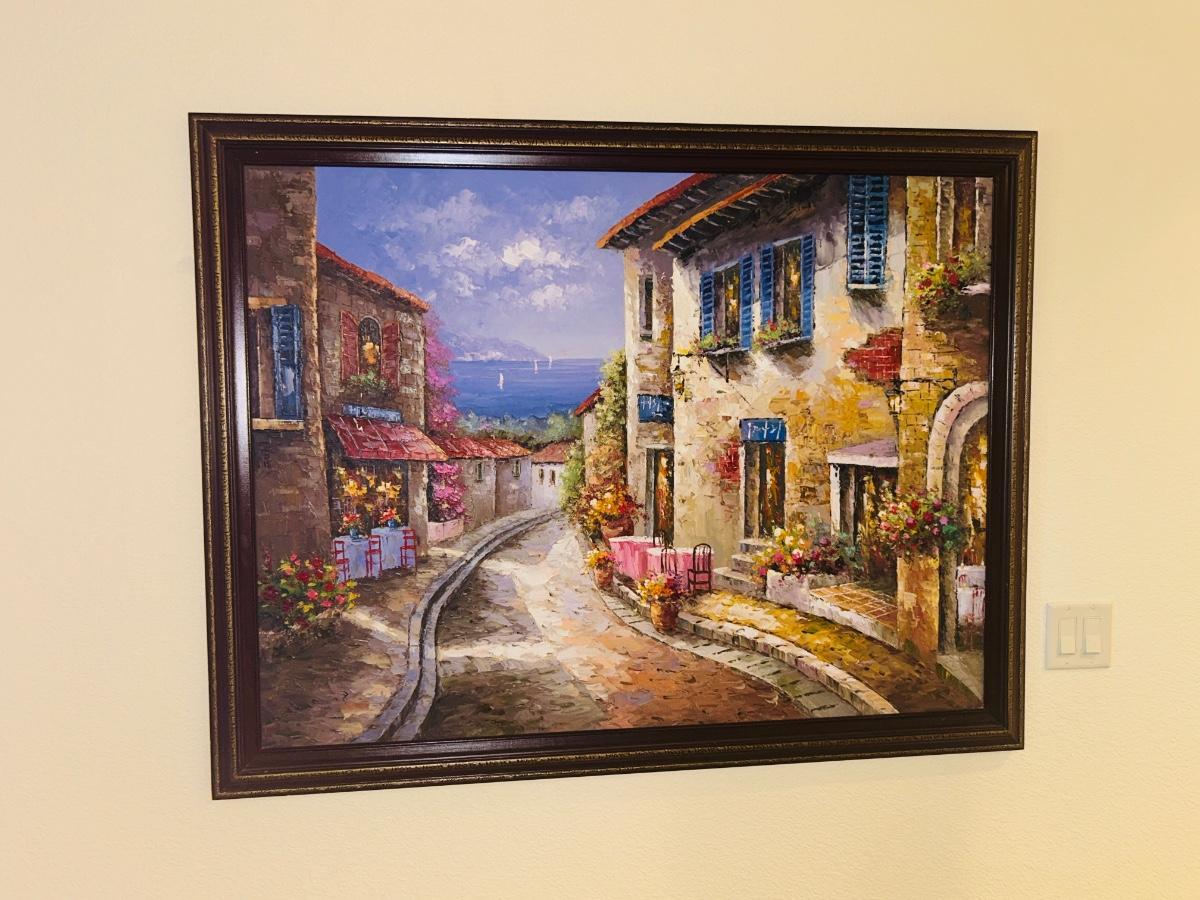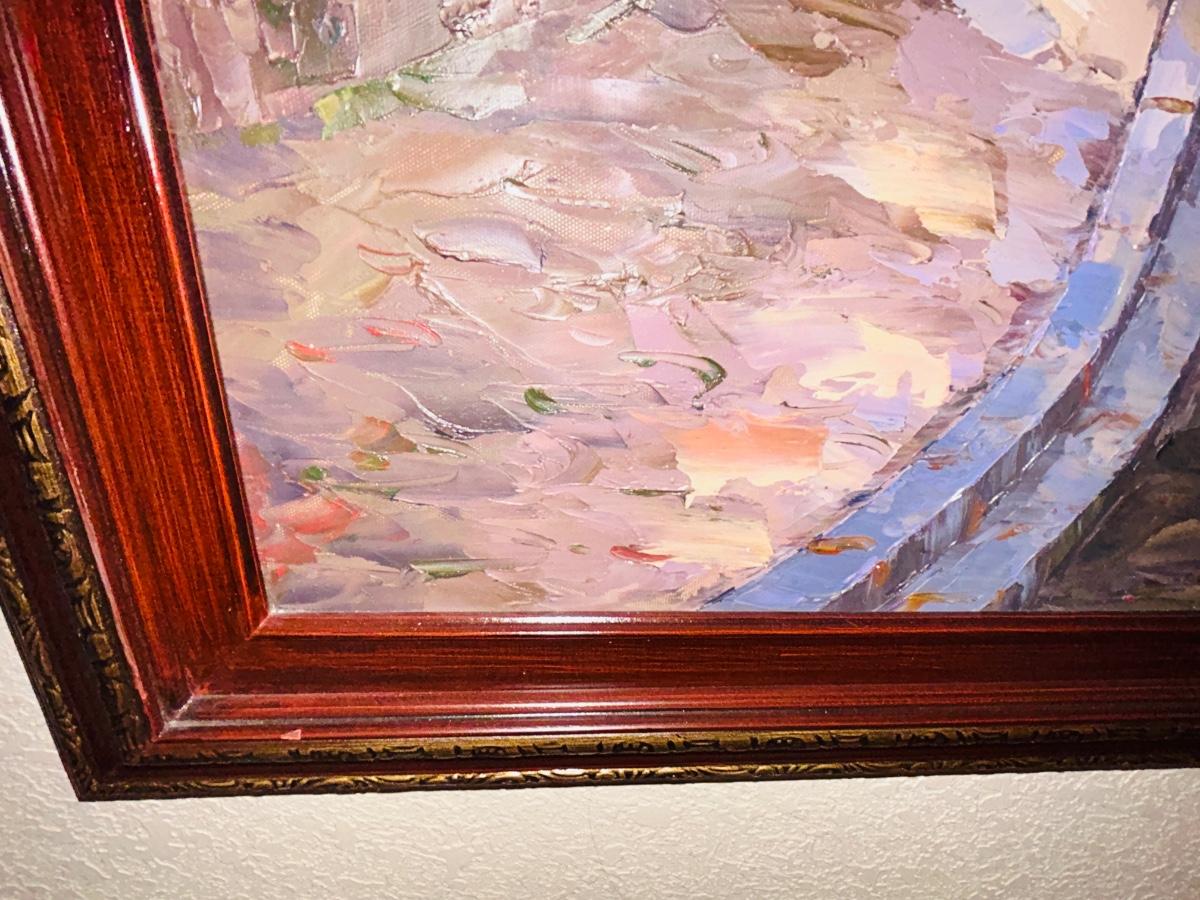 The painting in the image is "Bella Franche" by S. Sam Park, hand-embellished serigraph on stretched canvas.