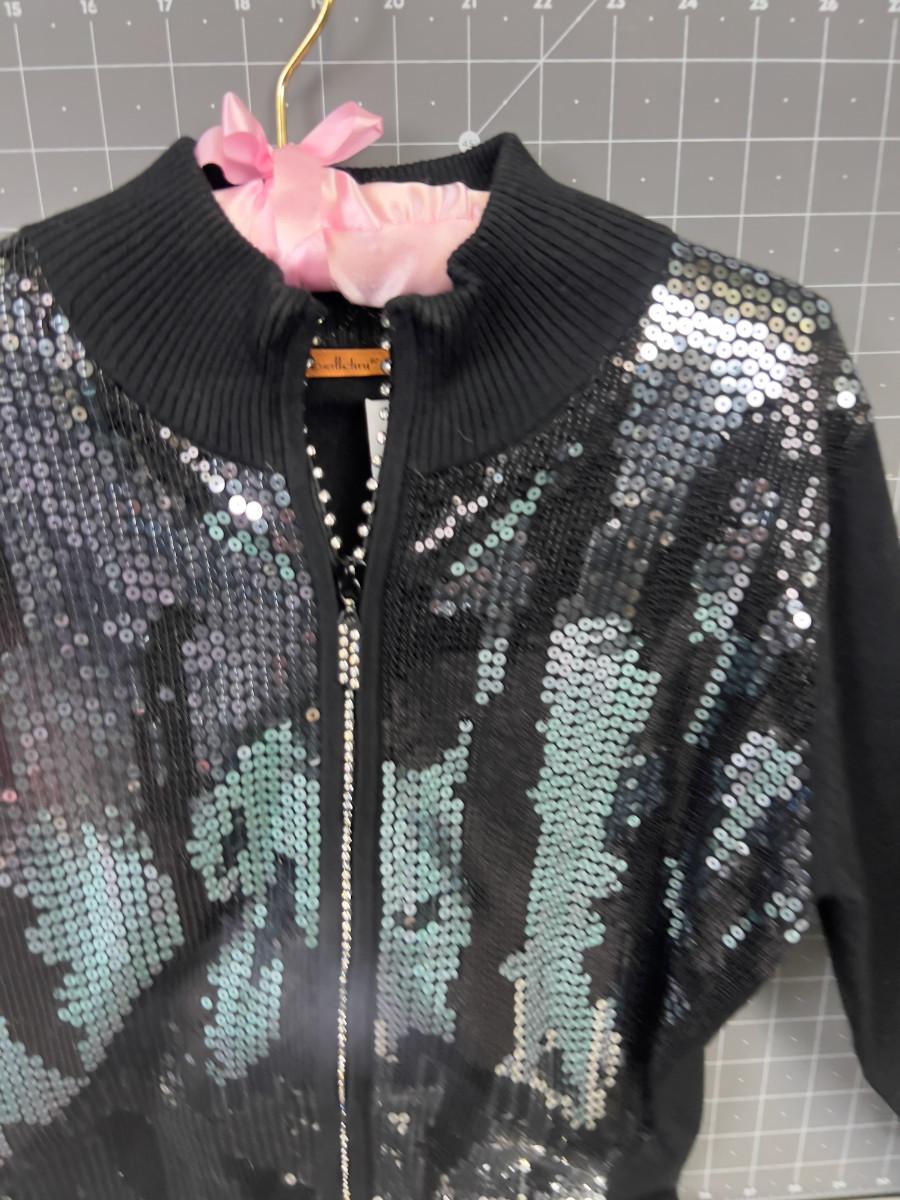 BELLDINI Small Black Cotton Sequin Women's Sweater