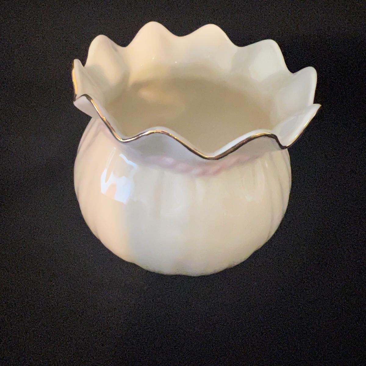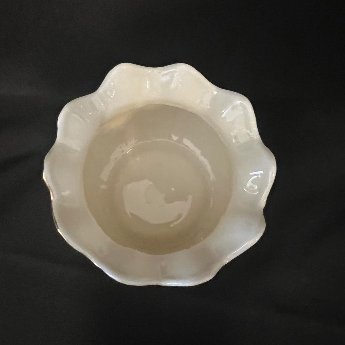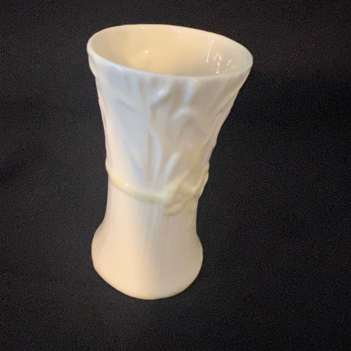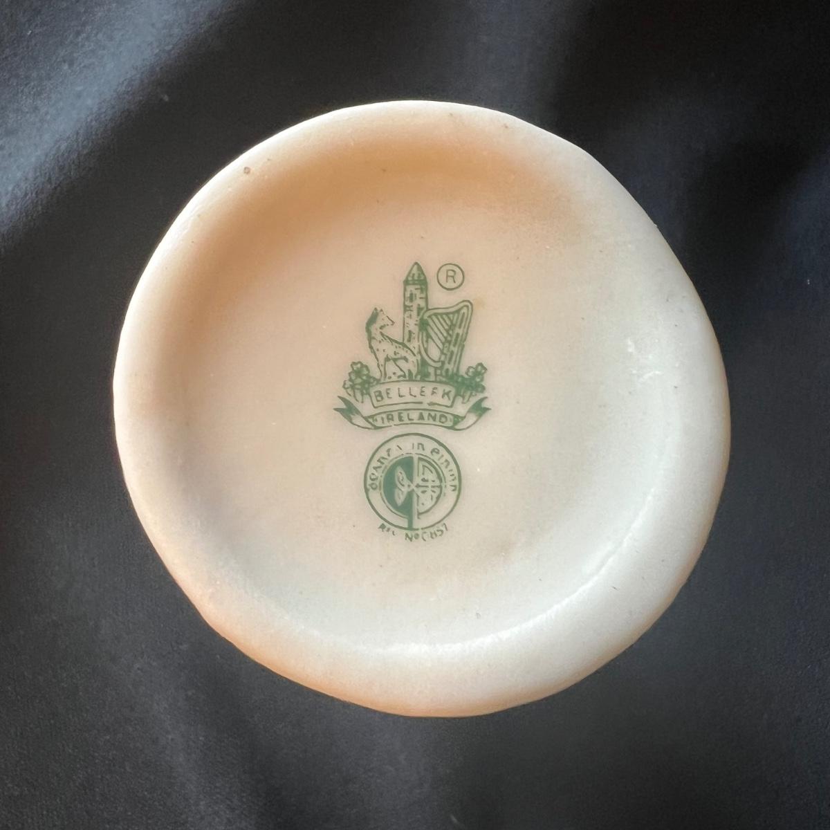 A collection of small Belleek Ireland porcelain. A small bud vase measures 2”D x 4”H. The leaf dish measures approximately 5”D and the small vase measures 3.25”S x 2.5”H.