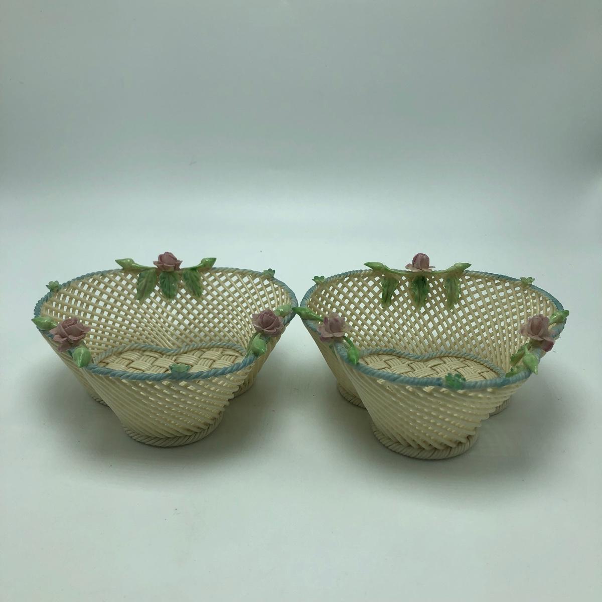 Lot includes two Belleek baskets with a floral design on top. Baskets measure 5” x 5.25” x 2.25”.